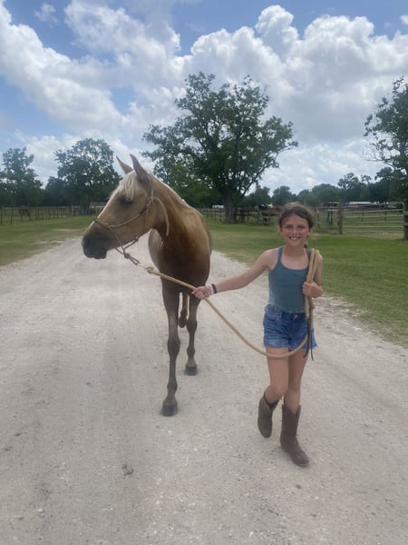 Been there done that kinda horse. Nothing much phases this girl. Shes a jungle gym for kids and a working partner for any adult. Come give her a try here in Alvin Texas.