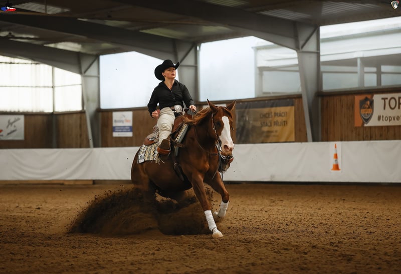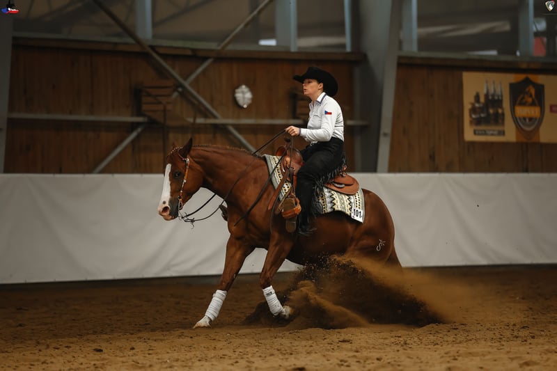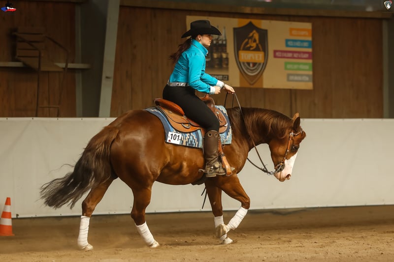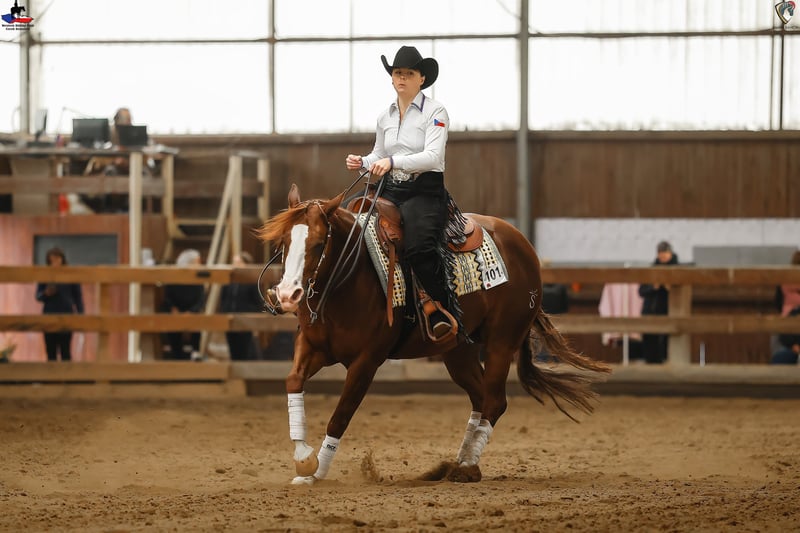 🐴 SK Conquistador Gun 2019 QH mare chestnut Sire: SK Gunshiner (by Gunner) Dam: Conquistador Dun Me (by Conquistador Whiz) 📜 NRHA European Nominated 📏 148 cm 🏅 High Point Champion 2025 Reining Amateur 🥈 Reserve Champion of Czechia 2025 Reining Non Pro 🥇 Champion of Czechia 2024 Reining Non Pro 🥇 Champion of Czechia 2024 Reining Junior 👉 The mare is shown in reining. She is very talented, really nice and easy to ride. Achieved score in Non Pro classes 73. 👉 Clean X-rays - available to serious interested parties. 🎥 Full-length show video available via WhatsApp +420 774 377 428 📩 More information via WhatsApp +420 774 377 428 📍 Smart ranch – Kozlovice, Czech Republic