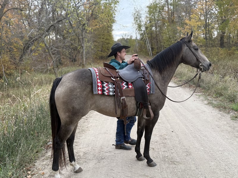 ⚜️𝐓𝐇𝐄 𝐅𝐀𝐋𝐋 𝐇𝐄𝐑𝐈𝐓𝐀𝐆𝐄 𝐂𝐋𝐀𝐒𝐒𝐈𝐂⚜️ Happening now thru MONDAY | NOVEMBER 3rd - Available EXCLUSIVELY on HorseBid's website! For more details and to register visit: www.Horsebid.com CONSIGNOR CONTACT: Gabriel Murphy 320-339-1458 LOCATION: Cannon Falls, MN BREED: Quarter REGISTERED: No COLOR: Buckskin HEIGHT: 14.3 AGE: 6 GENDER: Mare 🌟 Stella – Beautiful 6-Year-Old Buckskin Mare 🌟 Stella is a stunning 6-year-old buckskin mare standing 14.3 hh. She turns heads wherever she goes — whether out on the trail or in the arena — with her big hip, eye-catching dapples, and the perfect size for any rider. This mare is gentle, quiet-minded, and a pleasure to be around. She loves being groomed, stands well for the farrier, and has an easygoing, steady way of going. Stella has been used for all kinds of ranch work: checking fences, doctoring sick cattle, pasture roping, sorting, and loading trucks. She’s also been on overnight camping trips and hauled all over for trail rides — she’s seasoned, solid, and broke the right way. In the arena, Stella has a slow, smooth walk, jog, and lope. She takes both leads with ease, has nice lope departures, and circles up beautifully. She stops off your seat with just a soft “whoa.” She’ll side-pass to open and close gates, go through obstacles, push the ball, and can even be ridden bridleless. Out on the trails, she’s as dependable as they come — she’ll lead, follow, or ride anywhere you point her. She’s traffic-safe, stands tied quietly, loads and unloads with ease, and is fine using a mounting block. Stella is sound, up to date on vet and farrier care, and ready to go in any direction you choose.