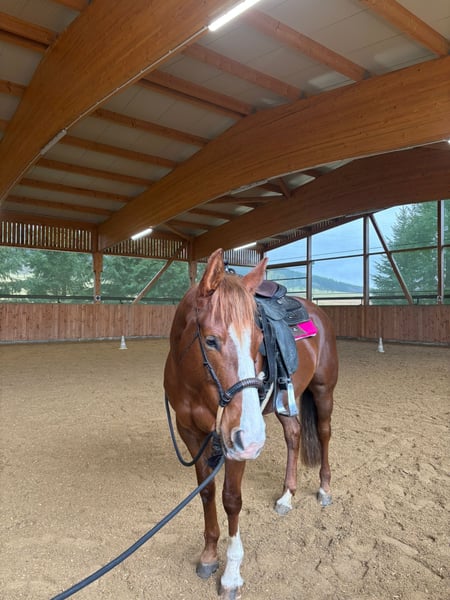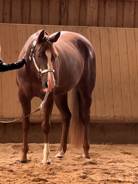 En venta por encargo: CC Spark Whiz Smart, conocida como Emmi, es una hermosa y elegante yegua de 7 años de raza Quarter Horse, con una conformación correcta y una personalidad encantadora. Emmi posee sangre de gran calidad en reining, aunque debido a su carácter individual, no es la mejor opción para la competición en reining. Sin embargo, ya ha adquirido experiencia en concursos en la disciplina all-around. Busca un jinete sensible que valore su carácter delicado y sensible. Es segura en el campo, bien preparada en educación básica y muestra mucha colaboración y disposición para aprender cuando se le dan ayudas claras y tranquilas. Debido a su temperamento, no es una yegua para jinete principiantes. Destaca especialmente en trabajo en el suelo y en showmanship at halter, donde se distingue por su calma, amabilidad y apertura hacia las personas. Emmi conoce el manejo de cascos, el transporte y actualmente vive en un paddock con una manada mixta. Está regularmente vacunada, desparasitada y libre de patologías. Sus dientes han sido revisados anualmente. Actualmente, Emmi está en entrenamiento y puede ser probada en montas. Se busca para Emmi un hogar amoroso y experimentado, para que pueda seguir desarrollándose y recibiendo cuidados adecuados.
