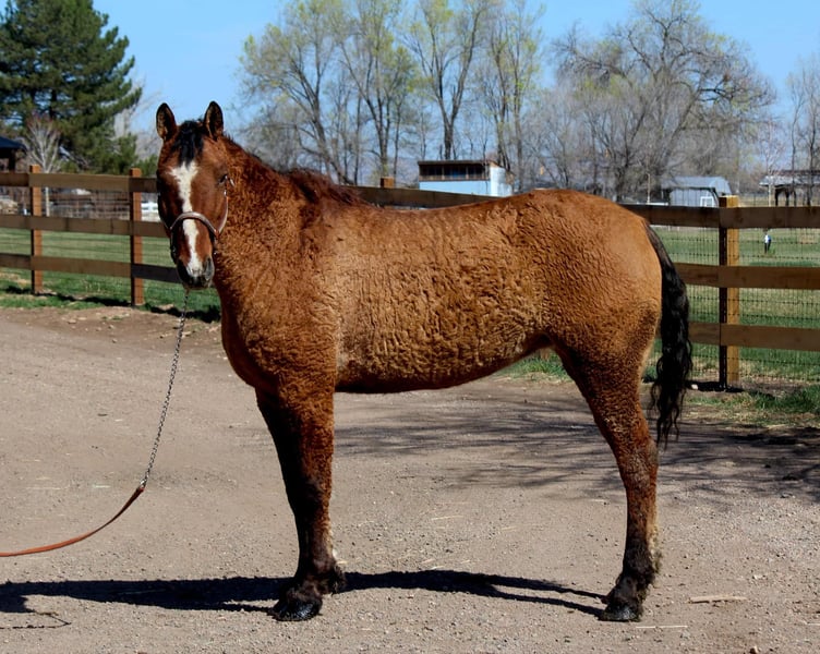 ONLINE AUCTION Place your bids at www.PlatinumEquineAuction.com Starting Bid $3500 Auction ends April 27th, 2025 Need a new saddle? Check out White Rock Saddles on our website or Facebook! Hear about Halsey… Halsey describes all the characteristics of An American Bashkir Curly horse very well! On top of her sweet and laid back demeanor she is safe for anyone and loves other horses/livestock and people alike. Halsey stands at 15 hands is built like an absolute tank, she has been barefoot her whole life with very hardy feet, she is one of the only horses that we will take into the mountains on rough terrain and steep trails without shoes. Halsey can go English or western, has been ridden over cross rails and even taken on light cross country courses, though it is new for her she shows a passion and a true future in it! Halsey has dabbled in western pleasure, has a nice slow job and lope and stops off of your seat. She backs up with light pressure and has a pretty rollback. Halsey is easy and simple to ride, she does not have any fancy buttons which makes her great for kids and beginner riders who need a horse to guide and take care of them. Halsey loves trails and has been right through downtown! She has been all over Fort Collins and is a horse you can just drop your reins with and enjoy the ride. Check out her video and come meet this sweet and rare mare! Located in Fort Collins, CO. Contact Dynamite Horses Thea 970-632-6344 with any questions. ONLINE AUCTION Place your bids at www.PlatinumEquineAuction.com Starting Bid $3500 Auction ends April 27th, 2025 Need a new saddle? Check out White Rock Saddles on our website or Facebook!