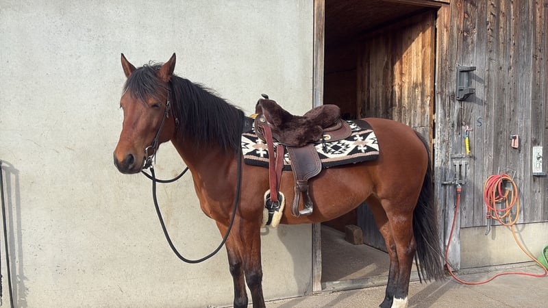 Schweren Herzens muss ich mich aus privaten Umständen von meiner süßen Maus trennen 🥺 • Rasse: American Quarter Horse Mix • Geschlecht: Weiblich • Geburtsjahr / Alter: 05/2018 / 7 Jahre • Stockmaß: ca 1,54cm • Ausbildungsstand: Grundsusbildung Englisch und Western • Abstammung: Italien Abby ist eine liebenswerte, zuverlässige und verschmuste Partnerin mit einem angenehmenen Temperament. Sie ist gut erzogen im Umgang, schmiede- und verladefromm und kennt Boxenhaltung mit Paddock. Unter dem Sattel zeigt sie sich motiviert und lernwillig. Sie wurde von mir freizeitmässig geritten, dennoch benötigt Sie eine sichere Reiterin die ihr ausserhalb der Koppel Sicherheit gibt. Sie ist regelmäßig geimpft, entwurmt und dem Alter entsprechend gesund. Ich wünsche mir für Abby ein liebevolles, passendes Zuhause mit ausreichend Bewegung und Pferdeanschluss. Für mehr Infos, Fotos oder Videos gerne melden. Kontakt: Chiara List (+43)0676/6801301 Im Preis sind diverses Zubehör enthalten: (Sattel, Zaumzeug, Decken, etc..) Eine Heuraufe kann ebenfalls miterworben werden ( Füllmenge: 9-15 kg). Probereiten nach Absprache möglich.