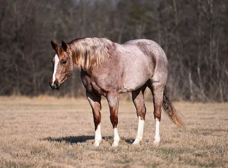 Rosie, 8 jaar oud, 1,55 m, rode roan AQHA merrie