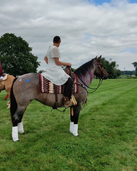 "AVAILABLE ON ONLINE HORSE AUCTION AT www DOT MagicHorseAuction DOT com BIDDING OPEN NOW thru TUESDAY | October 14TH! - BUY IT NOW AVAILABLE! *Final price will be determined on auction site* CONSIGNOR CONTACT INFO: Mary Kurtz 330-464-8895 LOCATION: Dundee, OH KG Blue Moon Erizon Aka Moon is a gorgeous well built roan mare. I dont even know where to start on this amazing mare. She is just that fabulous.! We have had her over 4 years Moon is well broke to ride has 3 amazing gaits. Picks up both leads, yields to leg pressure, sidepasses, backs up, and is a pleasure to take down the trail. Crosses water,logs, and will lead or follow. Moon is the type of horse I pull out of the pasture and ride once then put my husband on her to go trail riding. Moon does well to haul to different places to ride. Steps off the trailer like she has already been there. Moon does well barefoot and has regular trims. She is up to date on teeth, coggins, and vaccinations. Moon has been ridden in parades and handles it like a champ she isn't scared or jumpy from all the loud noises and commotion. She has also been ridden after dark under the moonlight and does great with that its no different to her. Moon has great ground manners and is an absolute pleasure to have around. Moon is checked in foal with a heartbeat to an NRHA money earner Hey Joe due on March 13, 2026. Hey Joe is by 8.4 million dollar sire Smart Spook and out of Best Stop with PE of 1.1 million. If you have ever dreamed of having a mare and raising a foal this is an opportunity for you. She has had 3 foals for us and is an amazing Mom. She doesn't get upset when you go in her stall with the foal and has had zero complications. Moon may crib if stalled for extended periods of time. Moon is one of those horses that you just love having around and she won't make a fuss. Moon loves to please and would excel in the ranch riding shows or I could also see her do well as a rope horse. Moon does well with pulling something, tarp, bull whip, and Crosses obstacles. She will sit down on a bag, loads, bathes, and does well for the farrier. She is 100% SOUND. For more info dont hesitate to reach out to Mary @330-464-8895