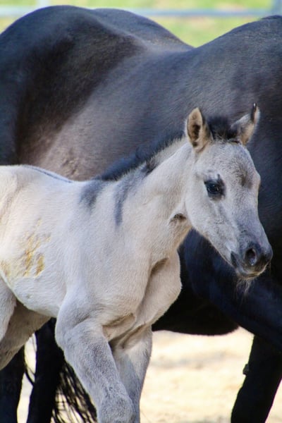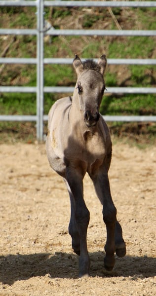 Am 20.03.2026 wurde diese wirklich typvolle und große Quarter Horse Mädchen geboren ❤️ - Quarter Horse Stutfohlen - geboren 20.03.2026 - grullo ( homozygot ) - 6 Panel n/n Ratenzahlung möglich! „ER Oakie‘s Silver Gipsy“ überraschte uns alle mit ihrer beeindruckenden Größe und lässt erahnen was ihre Mama geleistet hat! Bereits bei ihrer Geburt,musst sie ein Stockmaß von über einem Meter und auch der Rest ihres Fundaments ist wahrlich beeindruckend…große kräftige Gelenke, starke Beine,ein wunderschönes Köpfchen und eine edel wirkende Fellfarbe! Auch ihr Interieur überzeugt…mutig,aufgeschlossen und gibt schon jetzt gerne Vollgas! Hier erwirbt man den Ursprungstyp….kurz,kräftig,schnell,wendig und ein geschätztes Endmaß von ca 150cm ☺️ „Gipsy‘s“ Papa, „Oakie Silver Dust, stammt von der „Shining Grullo Ranch“ aus Texas und hat uns vom ersten Moment an überzeugt…er bringt ein tolles Allround Pedigree mit und lässt seiner Tochter somit alle Sparten offen! Ihre Mama „BD Shari Shining Bar“ ist seit einigen Jahren fester Bestandteil unserer Zucht und sie überzeugt täglich mit ihrem unkomplizierten und verschmusten Wesen…ihre tollen Eigenschaften gibt sie stabil an ihre Fohlen weiter! Sie weißt ein tolles Pedigree vor und vereint viele Cutting und Reining Legenden auf ihrem Papier wie zum Beispiel " Fritz Power ", " Doc Bar " , " King ", " Doc Olena " usw.. In ihrem Pedigree finden sich einige Pferde der Hall of Fame was sie für uns zu einem echten Juwel macht! www.east-ranch-poa.de die letzten Bilder zeigen den Papa