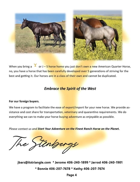 Hochwertige, braune Stute, deren Mutter eine der ruhigsten Stuten im Herdenverband ist, und ihre cow-horse-ähnliche Konstitution ist beeindruckend. Dieses Pferd zieht alle Blicke auf sich, wenn man sie in den Paddock oder die Arena führt.
