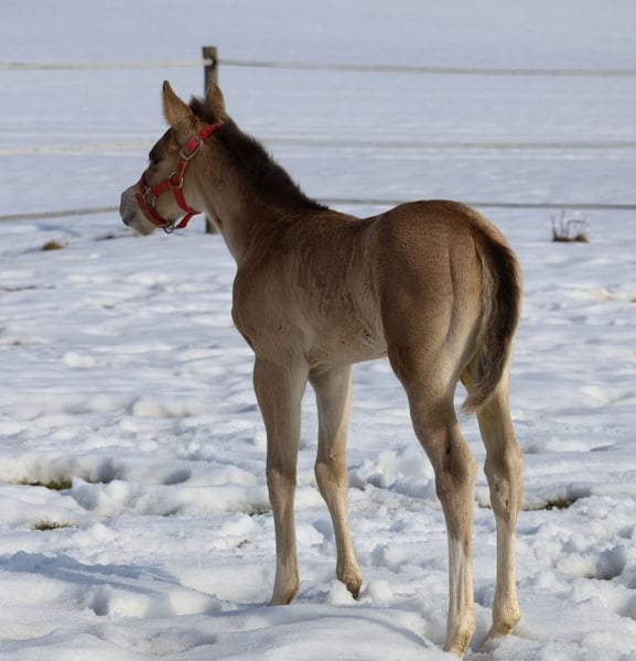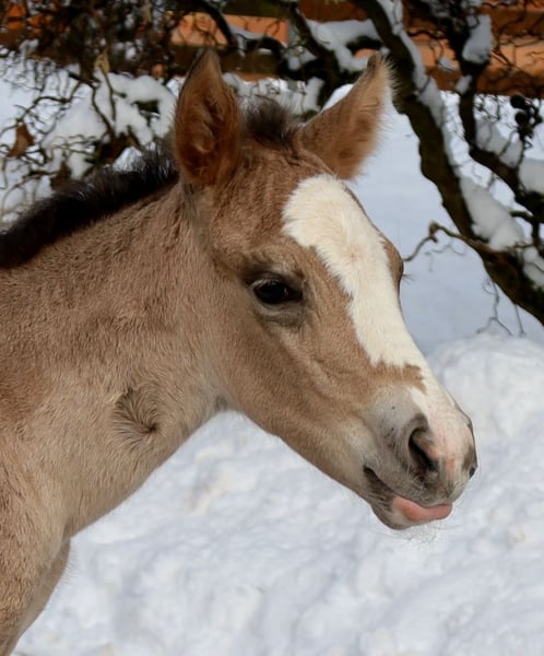 GOTTA LOPIN LUCINDA, geboren op 26-01-2026, buckskin Onze "Liz Gotta Gun" (Lisbeth) en onze "Blackberry" hebben een echt schattig merrieveulen gefokt – je kunt gewoon zeggen dat de combinatie perfect past. "Lucinda" heeft alle positieve eigenschappen van haar ouders meegekregen: een correcte bouw en benenstand, veel charme en uitstraling, bewegingpotentieel, en ze zal zeker een betrouwbare rijpartner worden, net als haar ouders. Dit betekent dat een paardenliefhebbend gezin veel plezier met haar zal hebben. Ze zal ook een uitstekend rijpaard zijn voor reining en de ranch horse-klassen, zoals Ranch Riding, Ranch Trail, Ranch Rail, en ook in de allround-competities. Haar pedigree spreekt eveneens voor zich, met vele hoogwaardige verervers en legenden uit de Quarter Horse-gefokte, zoals Hollywood Dun It, Grays Starlight, Smart Little Lena, Continental King en King P-234. Het AQHA-papier is online in te zien en wordt binnenkort naar ons toegestuurd. Ze wordt binnenkort gechipt en het DQHA-equidenpaspoort inclusief fokkerscertificaat aangevraagd. Beide ouders hebben een 5-panel-test en IMM/MYH1-test ondergaan. Net als al onze veulens groeit ze op in een kudde met leeftijdsgenootjes en andere paarden, en wordt ze vakkundig opgevoed. Regelmatige ontwormingen en afspraken met de hoefsmid zijn voor ons vanzelfsprekend. Bij verkoop wordt ze levensverzekerd inclusief dierenarts-gezondheidsonderzoek. De kosten en het risico blijven bij ons tot de overdracht (=voltooid 6e levensmaand). Op verzoek en voor rekening van de koper kunnen inschrijvingen in de Futurity van de NRHA en de NSBA (vanaf dit jaar mogelijk) en het jongepaardenprogramma van de EWU worden geregeld. Haar ouders en meerdere halfbroers en -zussen zijn op onze boerderij te bezichtigen. Op de laatste foto's zijn haar ouders te zien. Tel. 0170/4443194 Veel foto's en meer informatie op www.goetz-quarterhorse.de