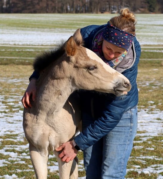 GOTTA LOPIN LUCINDA, urodzona 26.01.2026, buckskin Na tym naszym pastwisku „Liz Gotta Gun“ (Lisbeth) i „Blackberry“ stworzyli naprawdę słodką klaczkę urodzoną z miłości – można tylko powiedzieć, że ta krycia była idealna. „Lucinda” odziedziczyła po rodzicach wszystkie pozytywne cechy: poprawną budowę ciała i ustawienie kończyn, dużo uroku i charakteru, potencjał ruchowy, a z pewnością będzie niezawodnym partnerem do jazdy, tak jak jej rodzice, co z pewnością sprawi, że miłośnicza jazdy rodzina będzie z niej bardzo zadowolona. Będzie także doskonałym koniem do jazdy w reiningu i klasach ranch horse, takich jak Ranch Riding, Ranch Trail, Ranch Rail, a także w sportach wszechstronnych. O tym świadczy także jej rodowód, w którym znajduje się wiele wysokiej klasy reproduktorów i legend hodowli Quarter Horse, takich jak Hollywood Dun It, Grays Starlight, Smart Little Lena, Continental King i King P-234. Dokumenty AQHA są dostępne online, a wkrótce zostanie ona oznakowana chipem i otrzyma paszport DQHA wraz z zaświadczeniem hodowlanym. Oboje rodzice przeszli test 5-panelowy oraz test IMM/MYH1. Jak wszystkie nasze źrebięta, dorasta w stadzie z rówieśnikami i innymi końmi, pod opieką doświadczonych wychowawców. Regularne odrobaczanie i wizyty u kowala są u nas standardem. Przy sprzedaży zapewniamy ubezpieczenie na życie wraz z zaświadczeniem lekarskim o stanie zdrowia. Koszty i ryzyko pozostają u nas do momentu przekazania – czyli do końca 6. miesiąca życia. Na życzenie i na koszt kupującego możliwa jest wpłata na program Futurity NRHA i NSBA (od tego roku dostępne) oraz program młodych koni EWU. Jej rodzice i kilka półbraci są dostępni do obejrzenia na naszej farmie. Na ostatnich zdjęciach widać jej rodziców. Tel. 0170/4443194 Więcej zdjęć i informacji na stronie www.goetz-quarterhorse.de
