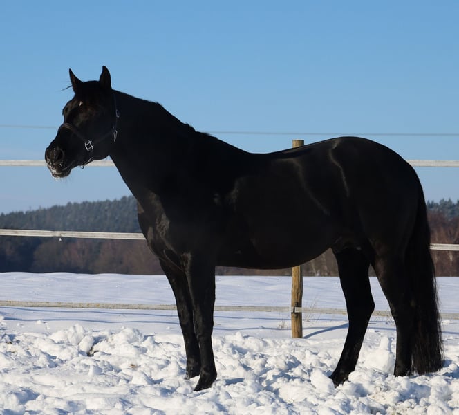 GOTTA LOPIN LUCINDA, nacida el 26/01/2026, castaña con crines negras Nuestra "Liz Gotta Gun" (Lisbeth) y nuestro "Blackberry" han dado a luz a una potranca muy adorable, ¡simplemente se puede decir que la cría encaja a la perfección! "Lucinda" ha heredado todas las cualidades positivas de sus padres: una estructura corporal correcta y buena postura, mucho encanto y carácter, potencial de movimiento, y seguramente será una compañera de monta confiable, como sus padres. Por ello, una familia apasionada por los caballos seguramente disfrutará mucho de ella. Además, será una excelente montura para disciplinas como Reining y las clases de Ranch Horse, como Ranch Riding, Ranch Trail, Ranch Rail, así como en el ámbito de los caballos versátiles. Su pedigrí también respalda esta calidad, incluyendo a destacados reproductores y leyendas de la cría de QH, como Hollywood Dun It, Grays Starlight, Smart Little Lena, Continental King y King P-234. El papel AQHA está disponible en línea y también en formato físico en nuestra oficina. En breve, será chipada y se solicitará el pasaporte de equino DQHA, incluyendo la certificación de cría. Ambos padres han realizado las pruebas de 5 paneles y las pruebas IMM/MYH1. Como todos nuestros potros, crece en manada con otros caballos de su edad y recibe una crianza experta. Las desparasitaciones periódicas y las visitas al herrador son parte de nuestra rutina habitual. En caso de venta, se garantiza su seguro de vida, incluyendo un certificado de salud veterinario. Los costes y riesgos permanecen en nuestra responsabilidad hasta la entrega, es decir, hasta que complete los 6 meses de edad. A petición y a costa del comprador, se puede realizar la inscripción en la Futurity de la NRHA y la NSBA (posible desde este año), así como en el programa de potros jóvenes de la EWU. Sus padres y varios medio-hermanos están disponibles para visitar en nuestra finca. Las últimas fotos muestran a sus padres. Tel. 0170/4443194 Más fotos y detalles en www.goetz-quarterhorse.de