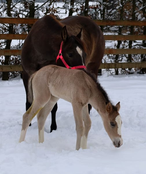 Zuckersüßes QH-Stutfohlen 2026 in Traumfarbe buckskin