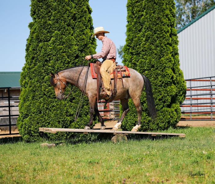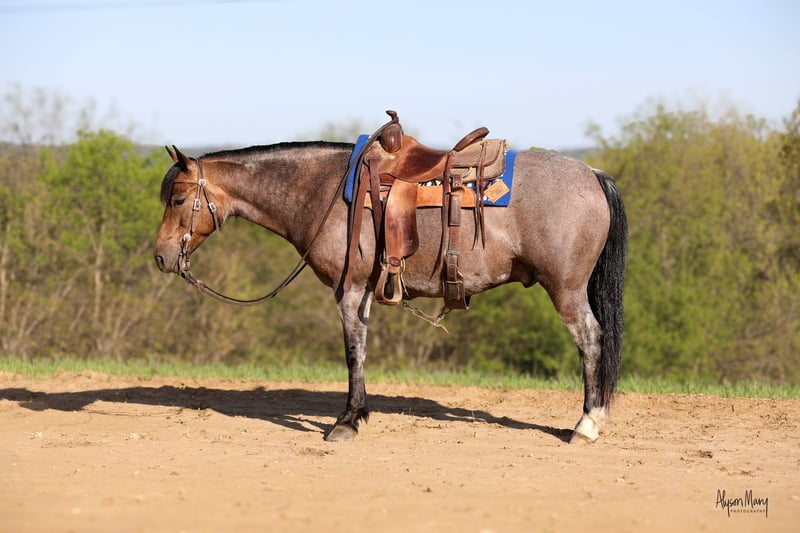 🎲𝓽𝓱𝓮 𝐑𝐈𝐃𝐄𝐑'𝐒 𝓒𝓱𝓸𝓲𝓬𝓮🎲 Happening now thru MONDAY | NOVEMBER 17th - Available EXCLUSIVELY on HorseBid's website! For more details and to register visit: www.Horsebid.com CONSIGNOR CONTACT: Tietjen Performance Horses 563-212-4686 LOCATION: Bellevue, Iowa BREED: Quarter Horse REGISTERED: No REGISTERED NAME: Skipper COLOR: Buckskin Roan HEIGHT: 14 AGE: 6 GENDER: Gelding If you’re looking for a great all-around gelding the whole family can enjoy, take a look at Skipper! Skipper is a 6 year old, grade, Buckskin Roan Gelding that stands 14hh. He is tall enough and stoutly built so an adult can ride him all day with ease. Yet he is short enough and so gentle that he won’t be intimidating to your child. He will get your attention with his stunning good looks. Then he will steal your heart with his sweet, lovable personality. Skipper has been in good hands since the start and has never learned any bad habits or vices. If you need a nice reliable ranch partner, Skipper won’t let you down. He has been used to check and move cows, sort pairs, rope and drag. He is stout enough for a day’s work, yet his smooth gaits and easy transitions make him a joy to be on all day long. Maybe you’re looking for a new trail riding partner. Skipper is happy to go for a relaxing ride. He goes wherever you point him. He guides easily with a one hand neck rein. He will cross whatever obstacle that comes up, from ditches, ravines, deadfall and water crossings big or small. Even things such as bridges, a teeter totter, tarps, big bouncing balls and the bull whip are not a problem. You don’t have to worry if your trail takes you into town or areas with traffic. They aren’t an issue for Skipper either. From bicycles, ATVs, farm machinery, cars, and trucks, he handles them all with ease. He loads in a stock or slant trailer and stands wherever you put him. If your camping and need to highline, Skipper is fine with that too. Skipper also knows how to drive. If you’re looking to take a nice relaxing buggy ride, Skipper has that covered also. He stands for the vet and farrier. He loves to be bathed and groomed. He sells 100% sound with clean x-rays. If you have any questions, feel free to contact Terry and Kate at 563-212-4686. We would love to visit more with you about Skipper.