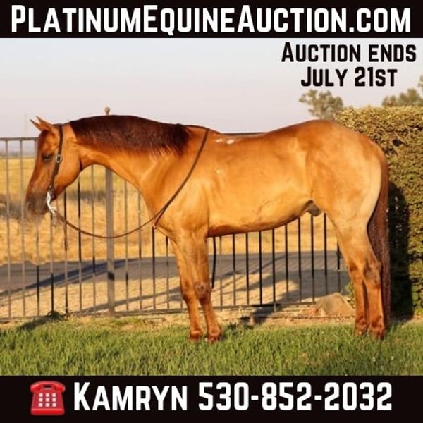 ONLINE AUCTION Place your bids at www.PlatinumEquineAuction.com Starting Bid $3500 Auction ends July 21st, 2024 Need a new saddle? Check out White Rock Saddles on our website or Facebook! Meet Axel, 8 year old 15 hands Dun. This extraordinary horse is a trailblazing, traffic-immune, arena champion who combines an unshakeable calm with a loving personality. Axel is ready to become your loyal and dependable companion, impressing everyone wherever he goes. Axel is an unparalleled trail master. He confidently navigates through steep mountain hills, dense redwood wilderness, and sandy beaches, lakes, creeks, showcasing his exceptional versatility. Like a goat, he carefully watches where he places his feet, ensuring your safety on every ride. Whether wildlife pops out unexpectedly or you’re traversing challenging terrain, Axel handles it all with ease and grace. Axel’s skills aren’t limited to the wilderness. He’s been ridden into town and along bustling beaches, remaining unfazed by rushing traffic, honking horns, bikes, hikers, strollers, dogs, and wildlife. Even on tight trails with hikers carrying walking sticks and giant backpacks, Axel remains calm and composed. His steady demeanor makes him the ideal horse for riders who want to explore a variety of environments. In the arena, Axel is just as impressive. He performs walk, trot, and lope all on a loose rein, showcasing his impeccable training and responsiveness. He has a great stop and turn around. He is very well broke in the arena. Axel also side passes to open and close gates with precision. His movements are fluid and graceful, making him a standout in any arena setting. Axel has been exposed to a variety of potentially spooky scenarios and handles them with poise. Flapping tarps and waving flags are no match for Axel’s calm disposition. His unwavering confidence makes him an ideal partner for riders of all levels, from intermediate to experienced equestrians seeking a reliable and versatile horse. He as well stands tied like a rock and will just able fall asleep where he is tied which makes him a joy for the little to groom and be around. He is great with other horses, stands to be saddled, bathed, farrier, and loads in and out of the trailer like a perfect gentleman. Axel is more than just a horse; he’s a dependable partner who will go anywhere and do anything you ask of him. His combination of trail mastery, urban and beach readiness, arena proficiency, and loving personality make him a rare find. If you want a horse that can handle it all with grace, composure, and charm, Axel is the perfect choice. Please contact us at KW Ranch and Performance Horses Kamryn 530-852-2032 Located in Pleasant Grove, CA. ONLINE AUCTION Place your bids at www.PlatinumEquineAuction.com Starting Bid $3500 Auction ends July 21st, 2024 Need a new saddle? Check out White Rock Saddles on our website or Facebook!