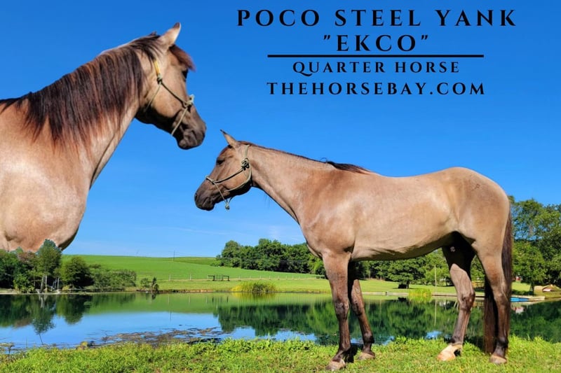 OPEN BIDDING ON THEHORSEBAY,COM. SALE ENDS ON 08/21 @ 3PM CT. More information is available on the website, including an UTD vet inspection, Coggins, video, images, and the owner's contact information to ask questions, request information, or make arrangements to come to visit. Meet Ekco! He is the perfect prospect for anyone looking for one or more of the following traits: • Smart • Athletic • Extremely Friendly • Willing • Big Hearted • Beautiful Mover • Goofy Personality • Easy Going • Hard Worker Ekco is a beautiful grullo-roan gelding that stands 15H and is looking for a new barn ? He is 100% sound and currently wearing front shoes He stands for farrier, floats, tacking up, mounting, bathing, grooming, vet checks, etc. He has been extensively trail-ridden and has been on countless camping trips including up to Benezette, PA. Take him out alone or in a group. He has been in a field with mares and geldings and prefers the middle of the herd. This is an in-your-pocket type of horse and is always ready to go. He has ridden with dogs and also is safe around ATVs, Cars and other traffic, tractors, etc. Ekco is being listed for an intermediate rider and above. He is all work-oriented and will need someone spry to combat his desire to work. This is a very special gelding, and once you meet him, you will see for yourself. Below is a video compilation as well as his vet check. This dude is ready to start his new job!