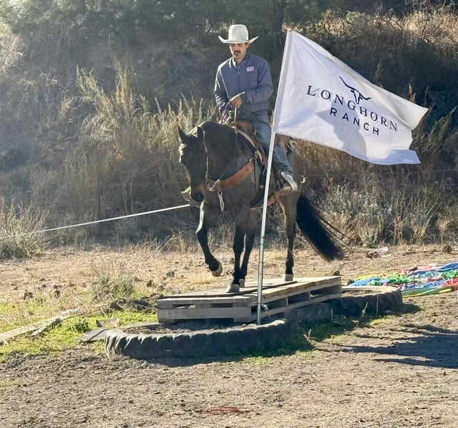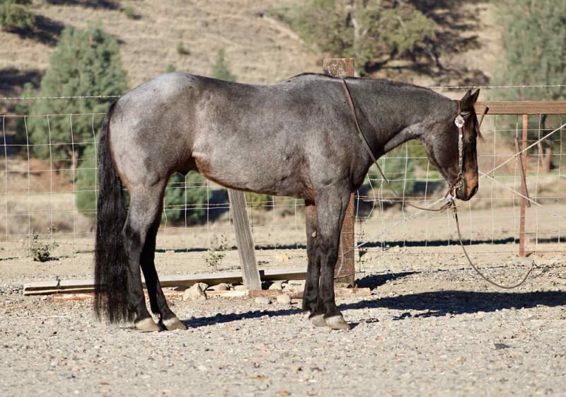ONLINE AUCTION Place your bids at www.PlatinumEquineAuction.com Starting Bid $3500 Auction ends November 23rd, 2025 Need a new saddle? Check out White Rock Saddles on our website or Facebook Arctic Jack – Cool-Headed, Kind-Hearted, and absolutely stunning If cool, calm, and collected had a name, it’d be Arctic Jack. This 9 year old striking blue roan gelding stands 15 hands, built solid and steady as they come, with a look that’ll make you do a double take and a mind that’ll make you grin. At 9 years old, he’s the kind of horse that makes every ride feel easy — the steady-eddy type that’s just plain enjoyable to be around. Jack’s the guy who never gets in a hurry unless you ask him to. He’s been used for gathering, sorting, checking fences, and the usual ranch chores — and he does it all with that quiet confidence that says, “Don’t worry, I’ve got this.” He’s great alone, happy in a group, and won’t bat an eye at water, bridges, dogs, or traffic. Flags, tarps, or the neighbor’s leaf blower? He’s not impressed. In the arena, Jack rides soft and smooth — picks up his leads, stops light, and stays between the reins without any drama. He moves off your leg willingly, keeps his cool, and has that perfect mix of “broke enough to enjoy” and “honest enough for anybody.” He ties, clips, bathes, and stands like a gentleman for both the farrier and vet. He tacks up easy, hauls anywhere, and handles time off like the kind of horse you wish you had a dozen of. Whether he’s in a stall or out in the pasture, he’s the same good-minded gelding every single day. And let’s be honest — it doesn’t hurt that he’s one of the most beautiful blue roans you’ll ever lay eyes on. He’s got that movie-star look with a ranch horse attitude — cool, reliable, and just the right amount of swagger. If you’re looking for a partner that makes every ride smoother, safer, and a whole lot more fun, Arctic Jack is your guy. 📍 Located at Longhorn Ranch – Paicines, California 📞 Contact: Dina 831-537-1915 ONLINE AUCTION Place your bids at www.PlatinumEquineAuction.com Starting Bid $3500 Auction ends November 23rd, 2025 Need a new saddle? Check out White Rock Saddles on our website or Facebook