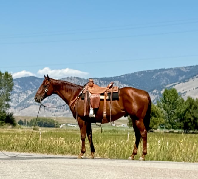 ⭐️ 𝐀𝐔𝐆𝐔𝐒𝐓 𝓐𝓵𝓵 𝓢𝓽𝓪𝓻 𝓛𝓲𝓷𝓮𝓾𝓹 ⭐️ Happening now thru MONDAY | AUGUST 25th - Available EXCLUSIVELY on HorseBid's website! For more details and to register visit: www.Horsebid.com CONSIGNOR CONTACT: Flint Creek Quarter Horses 406-544-9987 LOCATION: Drummond MT BREED: Quarter Horse REGISTERED: Yes REGISTERED NAME: Special Red Charmer COLOR: Sorrel HEIGHT: 15.2 AGE: 10 GENDER: Gelding Charmer is an AQHA registered Gelding that stands just under 15.2 hands. This is one for the whole family. Everything about this guy is gentle gentle. He is an experienced ranch horse that has been used for all aspects of ranch work including dragging calves to the branding fire and roping in the pasture. Been used to push and gather cattle in the mountain pastures and is surefooted and will go all day. He is a veteran trail horse as well and has logged many miles prowling the mountain trails and crosses all the different obstacles with ease. He has been ridden by Kids that know how to ride and takes good care of his passengers. He’s the kind you can lay off for months at a time and just go catch him, saddle him up and go, and he will saddle up gentle and ready to go to work every time. He is very easy to catch And stands like a gentleman for the Farrier. Easy to haul and bath. You can lead him up to any mounting block or step and simply Smooch to him and he will sidestep over and let you get on. This is a very kind hearted guy that has done a little bit of everything. He has also been used as a team roping horse heading and heeling steers in the arena. Stands quiet in the box and scores well. He is very fast and will gather one up quickly. This is a really nice horse that anyone that knows how to ride will get along with. We have used him as a lesson horse for novice riders and have used him on trail rides putting our less experienced riders on him. He has a good one hand neck rein on him and will side pass to open and close gates. He is 100% sound and has no lumps or bumps or blemishes. He is a good looking well bred guy in the prime of his life. He has a good fast walk outside and is smooth to ride. Has never bucked or pulled back. He is the kind you can go get a hard job done and then throw your grandbabies up in the saddle with you and he will just ease around. Feel free to give us a call and come and try him at the ranch. Call or text Tom for more info. 406-544-9987.