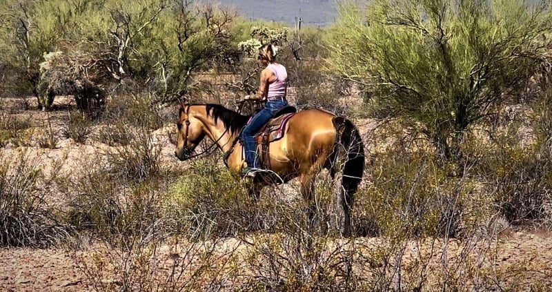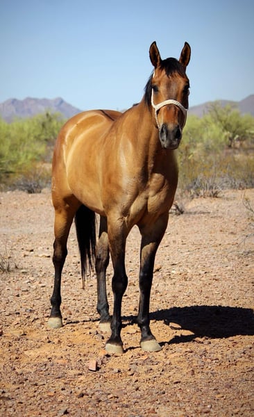 ONLINE AUCTION Place your bids at www.PlatinumEquineAuction.com Starting Bid $3500 Auction ends June 22nd, 2025 Need a new saddle? Check out White Rock Saddles on our website or Facebook! Meet Dino!! Gentle, broke and versatile all wrapped up in a pretty Dun package! Dino is a 9 year old, 16hh, grade quarter horse gelding that stands a full 16 hands tall. He has the most gorgeous dun coloring with a dorsal stripe and zebra leg markings. This guy will make you stand out in a crowd anywhere you take him! This gelding does a little of everything, but truly shines on the trails. He has been trail ridden alone and in groups, he prefers to lead but will follow along as well. He will cross brush and logs, water and has been exposed to dogs, bicycles, traffic and more. Not only is he sure footed and brave out on the trails, he is fancy and broke in the arena as well. He rides nicely one handed with a good neck rein, nice turn around, back up and even will ride around bridleless and bareback. On top of that Dino has been started riding English as well and will ride soft in your hands and move off leg well, he would be a great low level dressage prospect. He is a more woah than go horse, but he has also been pattered on barrels and poles, he may not win you a check but he will let you have fun! Dino has done lessons as well and has been ridden by all levels of riders. Dino has a very big, in your pocket personality! He is always wanting to know what you’re doing and join in with you. He is easy to catch, stands tied, bathes, good with his feet, loads and hauls well and gets along well with other horses. He is shod on all four and has great hard feet. Dino requires no maintenance. If you’re looking for a great, gentle all around type horse to enjoy on the trails and in the arena, this is your boy! Dino is located in Marana, Arizona. Please feel free to text or call Claire Siebols 435-899-0508 with any questions. ONLINE AUCTION Place your bids at www.PlatinumEquineAuction.com Starting Bid $3500 Auction ends June 22nd, 2025 Need a new saddle? Check out White Rock Saddles on our website or Facebook!