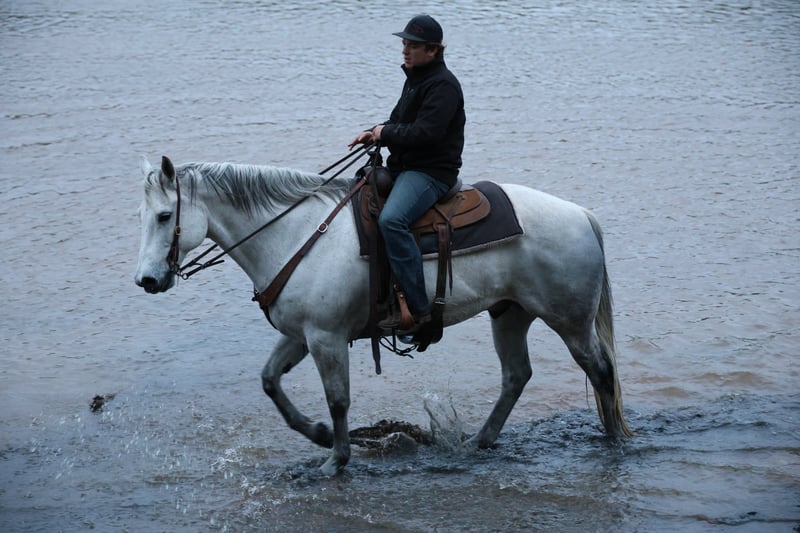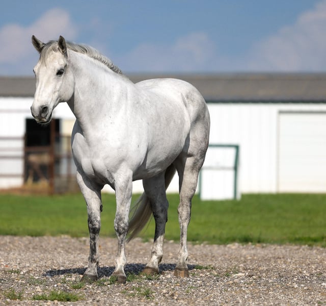 Titan, 10 jaar oud, 1,58 m (15,2 hh), grijze Quarter Horse ruin.