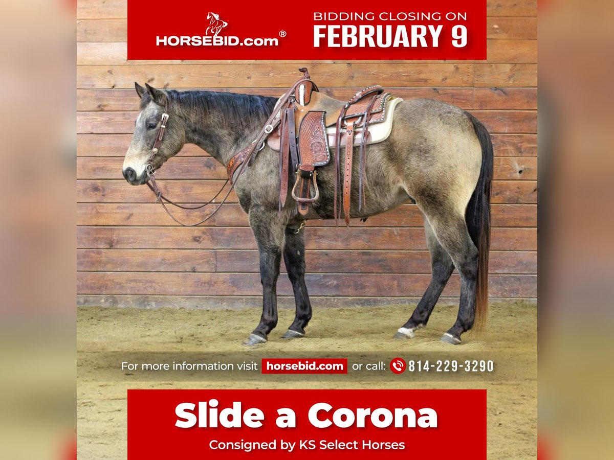 ❤️🔥𝑩𝒆 𝑴𝒊𝒏𝒆 𝐒𝐄𝐋𝐄𝐂𝐓❤️🔥 Happening now thru MONDAY | FEBRUARY 9th - Available EXCLUSIVELY on HorseBid's website! For more details and to register visit: www.Horsebid.com CONSIGNOR CONTACT: KS Select Horses 814-229-3290 LOCATION: Clarion, PA BREED: QH REGISTERED: Yes REGISTERED NAME: Slide a Corona COLOR: Buckskin HEIGHT: 15 AGE: 11 GENDER: Gelding Corona is a Registered American Quarter Horse Buckskin Gelding. Standing 15 hands tall and has a nice stocky built to him. Corona is a all around safe family horse that has been on many trail rides and is very sure footed in the rough terrain. Corona will go anywhere you ask him to go on the trail and never hesitate. He is very seasoned and reliable and dependable on the trail, arena and ranch. Not only does Corona ride great on the trail but he is also a very good arena horse and has a nice slow lope and hits his correct leads each way. Great Neck Rein , Good Stop and Side pass . He is very trained but also very easy and not complicated to ride at all. He should be suitable for all types of riders. My 8 Year Old Boy and 10 Year Old Daughter can ride him around all over by there self. He is that quiet and gentle! Corona is good when it comes to working with cattle and would excel as a ranch horse also. You wont find a better horse on the trail or arena. Corona will be the same horse every time you ride him. If you value your safety then be sure to check out Corona because he has always been safe with us in all aspects. Easy to bath, trailer and good for vet. Gets along with other horses in the pasture. Just a super nice all around registered gelding. Feel free to Call or Text Kris at 814-229-3290. We can help arrange delivery anywhere in the United States. Thank You and God Bless