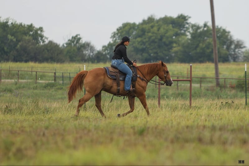 ONLINE AUCTION Place your bids at www.PlatinumEquineAuction.com Starting Bid $3500 Auction ends August 11th, 2024 Need a new saddle? Check out White Rock Saddles on our website or Facebook! Courage is a 9 year old, grade sorrel gelding standing at 15h. Courage is an easy keeper with a nice stout build. He has spent all of his life as a family trail horse and that is truly what he enjoys most! He has an adorable in your pocket personality while still being very well mannered. He will run to you from the far end of the pasture just for some attention and stand nicely to be haltered. Courage is a very safe and gentle horse who has been extremely consistent with me in any time off I’ve given him. Courage’s favorite gait is the walk. He will trot and lope if asked but he certainly prefers to walk everywhere he goes. Courage is ridden best with 2 hand, direct reins but with someone familiar with neck reining does well also. Courage is the type of horse that goes anywhere you want without question. I have taken him through water, over loud noisy bridges, ridden through cattle, walked by big water fountains, and did fantastic with traffic in town. If you’re looking for the perfect trail horse that isn’t in a rush Courage is your guy. Courage has been my favorite go-to horse when it comes to checking fences, getting the mail and packages, or just going for a leisurely ride to relax at the end of my day, its been especially fun for me to do these bareback in a halter. Courage is a gentleman on the ground as well as under saddle. He ties nicely to be groomed, saddled, and bathed. He does well by himself or with other horses in the barn or outside, there aren’t many things that can get this sweet guy worked up. He loads on the trailer with ease and backs off nicely. Courage has been an excellent citizen for my vet, farrier, and dentist and is up to date on those cares. Courage will make an excellent trail companion and family horse, he is so trusting of people and loves attention like a puppy dog! For more questions or information on Courage please call Sydney with SRS Training and Sales at (518) 935-8282. Courage is located in Granbury, TX. If you LOVE Courage and are not local the SRS team is happy to help arrange shipping anywhere in the US! ONLINE AUCTION Place your bids at www.PlatinumEquineAuction.com Starting Bid $3500 Auction ends August 11th, 2024 Need a new saddle? Check out White Rock Saddles on our website or Facebook!