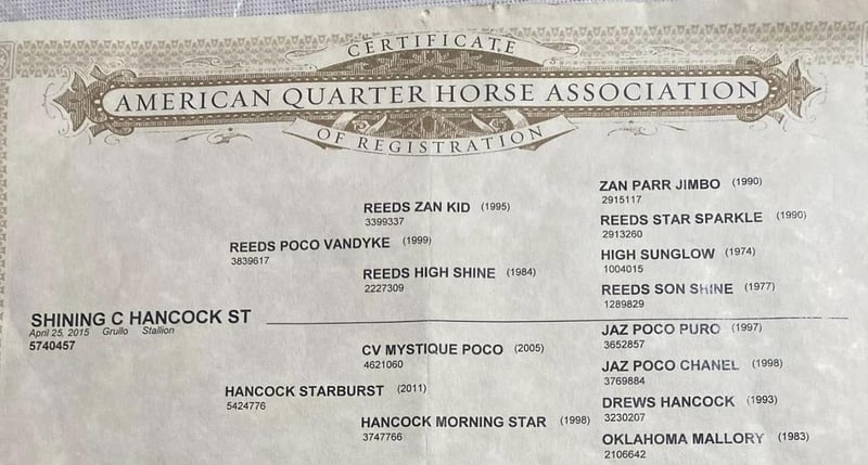 ONLINE-AUKTION Geben Sie Ihre Gebote unter www.PlatinumEquineAuction.com ab. Startgebot $3500 Die Auktion endet am 21. Juli 2024 Brauchen Sie einen neuen Sattel? Schauen Sie sich White Rock Saddles auf unserer Website oder Facebook an! Schauen Sie sich diesen Wallach an, der überall für Aufsehen sorgen wird. Chapo ist ein registrierter 9 Jahre alter, wunderschöner Grulla mit der Form, die Sie sich wünschen. Er steht 15,1 wiegt 1200lbs. Er wurde von den weltbekannten Shining C Grulla Horses gezüchtet! Chapo ist ein schöner Beweger und könnte wirklich jede Richtung gehen, Western oder Englisch. Er ist stark und willig und GENTLE! Er ist ein Wallach, der schon alles mitgemacht hat und den man ohne Probleme durch eine Parade mit Hunderten von Menschen reiten kann! Laute Geräusche, Verkehr, Menschen, belebte Straßen und Fahnen überall haben ihn nicht einmal aus der Ruhe gebracht! Nehmen Sie ihn durch jede Art von Land oder Gelände, das Sie wollen, er wird nicht einen Schlag aussetzen. Wenn Sie ein Pferd wollen, das immer gleich ist, dann ist er Ihr Mann. Gehen Sie Ihre Kühe auf ihm zu überprüfen oder haben einen schönen entspannenden Tag mit ihm auf den Pfaden. Er hält so lange durch, wie Sie ihn brauchen, und das in der Geschwindigkeit Ihrer Wahl. Chapo wurde zum Anbinden von Rindern im Freien eingesetzt und hat mit langsamen Rindern in der Arena angefangen! Er lässt sich ohne Probleme zum Baden und für den Hufschmied anbinden. Chapo genießt einen schönen Tag auf den Trails. Er galoppiert schön in beide Richtungen mit einem großen, fließenden Trab. Chapo wird jedes Hindernis vor ihm überqueren. Wir können die Lieferung an jeden beliebigen Ort in den Vereinigten Staaten, sogar nach Hawaii und Kanada, arrangieren. Unsere Ranch befindet sich in Stephenville, TX. Kontaktieren Sie Makenna Hartzel 817-659-3778 mit allen Fragen. ONLINE-AUKTION Geben Sie Ihre Gebote unter www.PlatinumEquineAuction.com ab. Anfangsgebot $3500 Die Auktion endet am 21. Juli 2024. Brauchen Sie einen neuen Sattel? Schauen Sie sich White Rock Saddles auf unserer Website oder Facebook an!