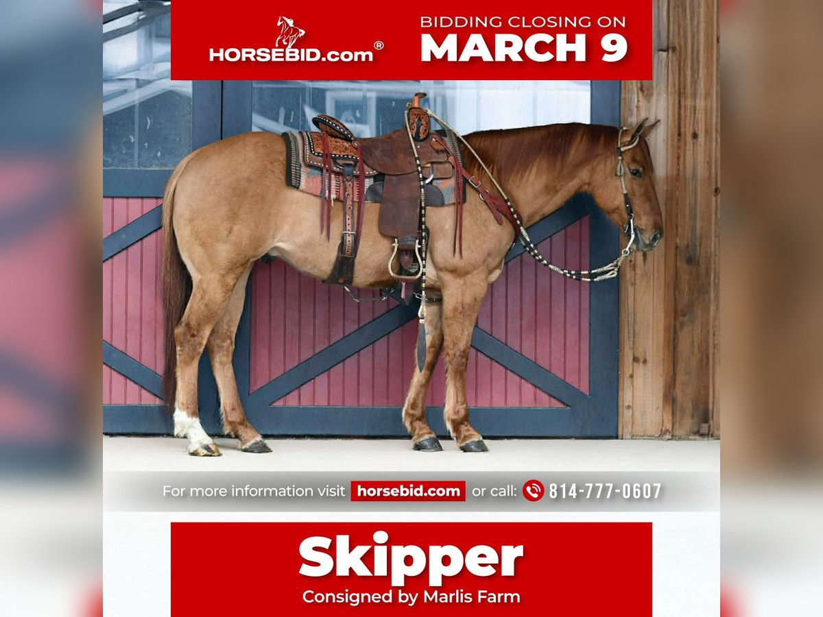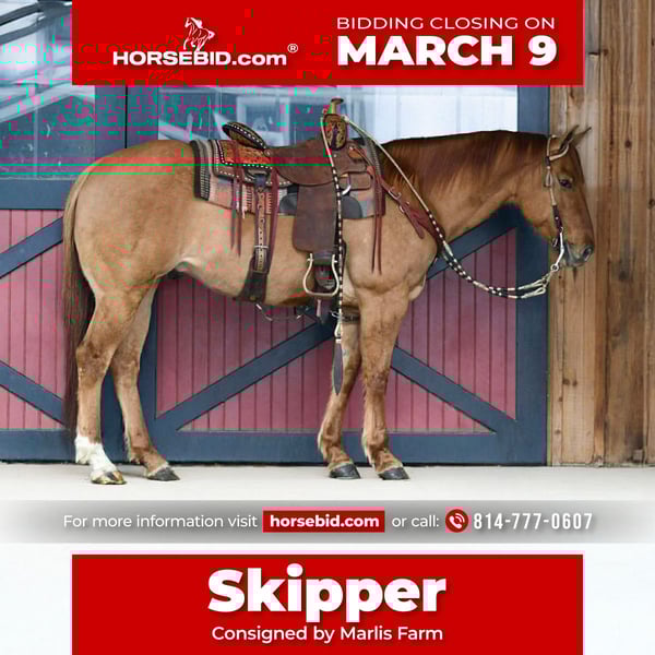 ℳ𝒶𝓇𝒸𝒽 ♦️𝐑𝐈𝐃𝐄𝐑'𝐒 𝐂𝐇𝐎𝐈𝐂𝐄♦️ Happening now thru MONDAY | MARCH 9th - Available EXCLUSIVELY on HorseBid's website! For more details and to register visit: www.Horsebid.com CONSIGNOR CONTACT: Marlis Farm 814-777-0607 LOCATION: Rebersburg, PA BREED: Quarter horse REGISTERED: Yes REGISTERED NAME: Hickory Brow Bo COLOR: Red dun HEIGHT: 15.1 AGE: 11 GENDER: Gelding Hickory Brow Bo AKA Skipper is an 11 yr old 15.1 hand red dun AQHA gelding. Meet Skipper a sharp looking red dun quarter horse gelding with the kind of build and presence that turns heads wherever he goes, with his classic dun color, strong bone and balanced conformation, Skipper is the total package! Skipper is well mannered and easy to be around both on the ground and under saddle, he stands queitly for grooming, tacking, bathing and for the farrier. He also loads and unloads well and settles into new environments. Under saddle he is smooth responsive and willing. He has a comfortable walk, jog and a smooth lope with a good stop. He rides out confidently alone or in a group and is a seasoned trail horse. He has been roped off of and does not get hot in the box, he has been used on the head and the heal side. Hes the type that aims to please and gives you an honest days work everytime you swing a leg over. Whether you are looking for a dependable trail partner, a versatile ranch horse or and all around gelding to enjoy, Skipper is one you dont want to miss. He sells sane,sound and ready for his forever home. For more info call Mark 814 777 0607 (call only) We can help arrange shipping anywhere!!
