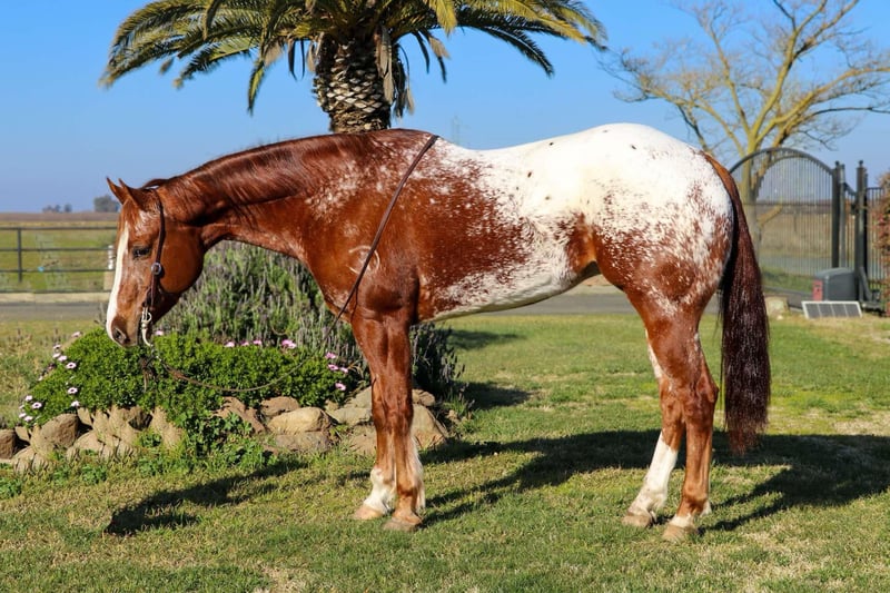 ONLINE AUCTION Place your bids at www.PlatinumEquineAuction.com Starting Bid $3500 Auction ends February 16th, 2025 Need a new saddle? Check out White Rock Saddles on our website or Facebook! If you’re looking for a horse that turns heads wherever he goes, AppleJax is your guy! Applejax is a beautiful 15.2H, 10 year old, Appaloosa gelding. This stunning gelding is the definition of fancy, with flawless movements and an impressive potential into show background. He was started in a reining program and has all the maneuvers you could ask for— a big, effortless slide stop, smooth spins, flying lead changes, and a low, collected headset. He moves with elegance and precision, making him an outstanding prospect for someone wanting to take him into the show pen. Beyond the arena, AppleJax is also an excellent trail partner. He’s confident and surefooted, handling rough terrain with ease. He crosses water, logs, and uneven ground without hesitation. He’s been exposed to cars, semis, livestock, wildlife, dogs, and quads, and he takes everything in stride, never overreacting. Whether you want to compete or just enjoy a stylish ride out on the trails, AppleJax is ready to go in any direction. This boy is a pleasure to have in the barn. He stands quietly for grooming, tying, saddling, and the farrier. He loads into the trailer with ease and is always eager to go on new adventures. AppleJax has been handled with care and is well-mannered, making him a joy to be around both in and out of the saddle. Due to his advanced training AppleJax isn’t recommended to be in a beginner home. He has all the buttons and responsiveness that make him an incredible athlete, but he needs a rider who can appreciate and utilize his talents to their fullest potential. If you’re searching for a high-quality, well-trained horse that is as fancy as they come, AppleJax is the one for you. He’s got the looks, the talent, and the versatility to excel in whatever you ask of him. Don’t miss your chance to own this exceptional horse! Located in Pleasant Grove, CA. Please contact Kamryn at KW Ranch 530-852-2032! ONLINE AUCTION Place your bids at www.PlatinumEquineAuction.com Starting Bid $3500 Auction ends February 16th, 2025 Need a new saddle? Check out White Rock Saddles on our website or Facebook!