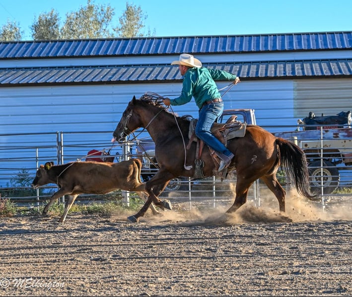 🍂 𝓐𝓾𝓽𝓾𝓶𝓷 𝑨𝑳𝑳 𝑺𝑻𝑨𝑹 𝑳𝑰𝑵𝑬𝑼𝑷 🍂 Happening now thru MONDAY | OCTOBER 6th - Available EXCLUSIVELY on HorseBid's website! For more details and to register visit: www.Horsebid.com CONSIGNOR CONTACT: 4 Spades Ranch 208-705-6540 LOCATION: Rigby, ID BREED: Quarter Horse REGISTERED: Yes REGISTERED NAME: GB Hickory Boon 2015 COLOR: Sorrel HEIGHT: 15.2 AGE: 10 GENDER: Gelding Crown is a 10-year-old, solid-as-a-rock gelding—the kind of horse that shows up every single day. Standing 15 hands, he’s done it all: heading, heeling, ranch work, hauled to World Series, team ropings, junior rodeos, jackpots, and the nightly rodeo. Crown fits a wide variety of ropers because he is forgiving and easy to ride. We’ve gathered bulls and cows on him, hauled him to state parks to watch the elk bugle, and even used him as a pick-up horse for the junior wild pony races. He’s my 12-year-old’s go-to horse, the one he trusts completely—even rode him with a broken hand and foot because he knew Crown was his safety net. My 8-year-old gathers yearlings bareback on him without a worry in the world. We use him to move pastures. He is defiantly the barn favorite around the ranch. Crown is steady, dependable, and has never once tried to jump or spook. Crown has that “grandpa style” walk—head down, reins swinging, and big steps that carry you where you need to go. If you’re looking for a trustworthy partner with miles of experience, this is the horse.