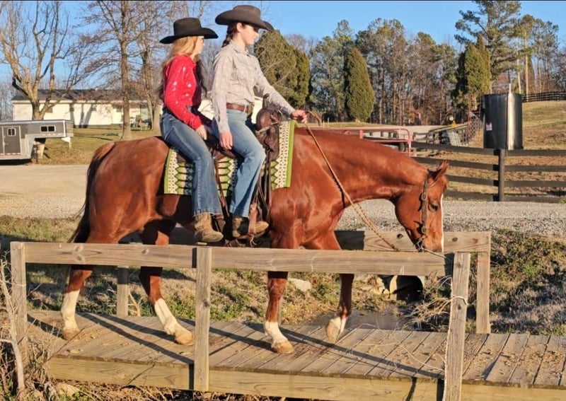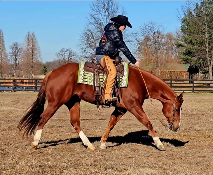 Ziggy, 11 jaar oud, 1,55 m hoge kastanjekleurige AQHA-ruin