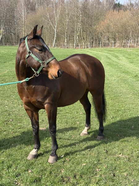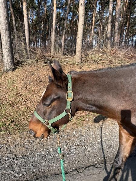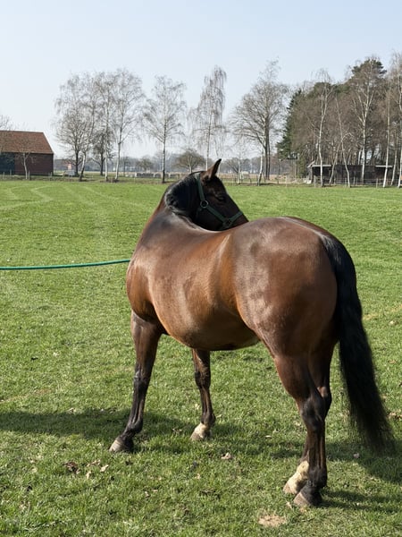 With a heavy heart, I am searching for a suitable new home for my Jac. Jac is 12 years old and an absolute character with a playful spirit. He is very people-oriented, always seeking contact with his humans, and loves spending time with them. He particularly enjoys groundwork and small tricks – he already masters some circus-like maneuvers. Jac is a mare and forms a very close bond with his main handler. Currently, Jac has a tendon injury and is shod. The injury is located in the front left leg, affecting the deep digital flexor tendon, which has a tear on the left side. According to the veterinarian’s assessment, there is a good chance that the tendon can heal completely – however, he will need time, patience, and a supportive environment. For this reason, Jac is being offered at a significantly reduced price and only with a protection contract. It is especially important to me that Jac finds a loving home where he can receive the time he needs for recovery and continue to enjoy the attention he so dearly loves. The well-being of the horse takes priority over the price. If you are genuinely interested and have further questions, I look forward to hearing from you via message or phone call.