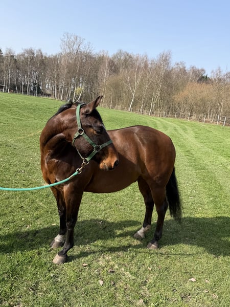 Schweren Herzens suche ich für meinen Jac ein passendes neues Zuhause. Jac ist 12 Jahre alt und ein absoluter Spaßkopf. Er ist sehr menschenbezogen, sucht immer den Kontakt zu seinen Menschen und liebt es, Zeit mit ihnen zu verbringen. Besonders viel Freude hat er an Handarbeit und kleinen Spielereien – auch einige Zirkuslektionen beherrscht er bereits. Jac ist ein Frauenpferd und baut zu seiner Bezugsperson eine sehr enge Bindung auf. Aktuell hat Jac einen Sehnenschaden und trägt daher Eisen. Der Sehnenschaden befindet sich vorne links. Betroffene ist die tiefe Beugesehne. Diese ist links angerissen. Laut Einschätzung bestehen gute Chancen, dass die Sehne wieder vollständig heilen kann – allerdings benötigt er dafür Zeit, Geduld und ein verständnisvolles Umfeld. Aus diesem Grund wird Jac weit unter Wert und nur mit Schutzvertrag abgegeben. Mir ist es besonders wichtig, dass Jac einen liebevollen Platz findet, an dem er die Zeit bekommt, die er zur Genesung braucht und weiterhin die Aufmerksamkeit erhält, die er so sehr liebt. Platz geht eindeutig vor Preis. Bei ernsthaftem Interesse und weiteren Fragen freue ich mich über eine Nachricht oder einen Anruf.