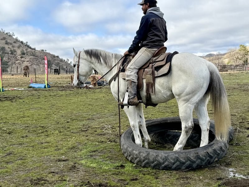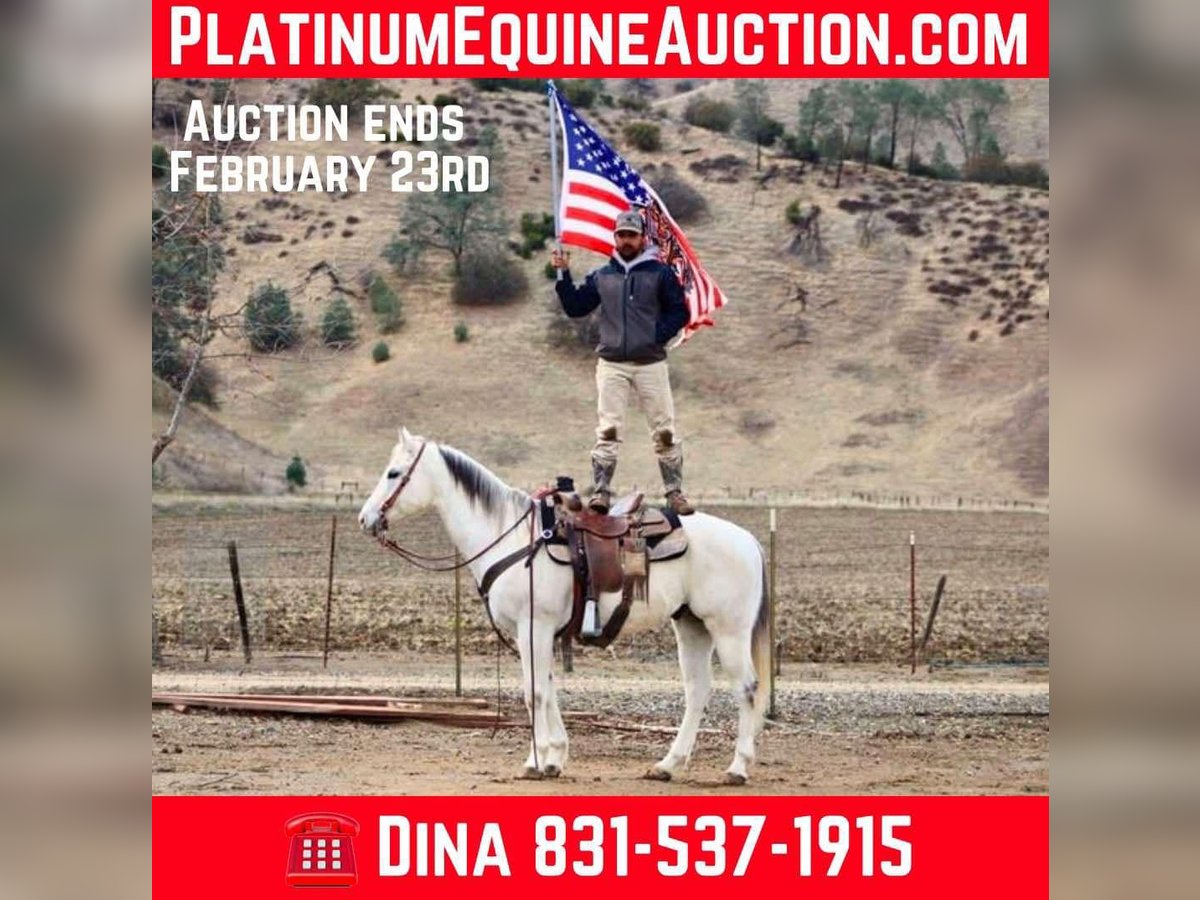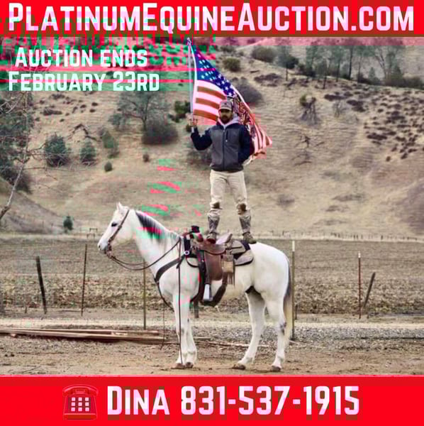 ONLINE AUCTION Place your bids at www.PlatinumEquineAuction.com Starting Bid $3500 Auction ends February 23rd, 2025 Need a new saddle? Check out White Rock Saddles on our website or Facebook! Allow me to introduce you to Boozey, a stunning grey gelding who stands at 15 hands tall and is 11 years old. He is a gentle and easygoing companion, perfect for anyone looking to enjoy a ride. With a smooth trot and lope, he effortlessly picks up his leads and bends at the pole, showcasing his soft feel. Boozey is a reliable trail mount, suitable for both seasoned trail masters and leisurely riders alike. He has successfully navigated various obstacles, including bridges, walkovers, and tires, all thanks to his willing nature. Boozey has also been exposed to flags, tarps, and even bouncy balls, demonstrating his calm disposition in the face of new experiences. He has confidently traversed busy roads, remaining unfazed by the sounds of cars and trucks. This horse is an excellent choice for riders of any level seeking a dependable partner. In addition to his trail skills, Boozey is an asset for ranch chores and will assist with gathering as needed. He navigates narrow trails, walks over brush and trees, and crosses water with great assurance. Friendly and easy to handle, he enjoys grooming and tacking up quietly. Whether riding alone or in a group, Boozey will lead or follow without issue. He loads and hauls well, adapting seamlessly to new surroundings. If you’re in search of a true partner, Boozey is the one for you. For more information, please reach out to Longhorn Ranch in Paicines, CA, and contact Dina at 831-537-1915 to discuss your potential new companion for life. ONLINE AUCTION Place your bids at www.PlatinumEquineAuction.com Starting Bid $3500 Auction ends February 23rd, 2025 Need a new saddle? Check out White Rock Saddles on our website or Facebook!