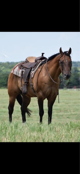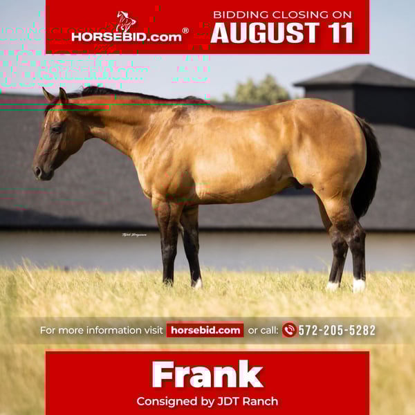 ⚜ The HERITAGE Classic ⚜ Happening now thru MONDAY | AUGUST 11th - Available EXCLUSIVELY on HorseBid's website! For more details and to register visit: www.Horsebid.com CONSIGNOR CONTACT: JDT Ranch 572-205-5282 LOCATION: Crescent, OK BREED: Aqha REGISTERED: Yes REGISTERED NAME: Peppys skipping town COLOR: Line Back Dun HEIGHT: 15.2 AGE: 12 GENDER: Gelding Frank is the kind of gelding everyone’s looking for but few are willing to part with — a 12-year-old, one-owner lineback dun gelding with a calm, old-soul temperament and the handle of a seasoned pro. He’s been ridden his entire life by the same gentleman and used for everything from day work to ranch chores to roping. Frank is a finished head horse, a finished breakaway horse, and rides like a reiner with a job. Here’s what makes him special: • Puppy-dog gentle, yet handy broke • Big, powerful turnaround, lopes collected, soft in the bridle • Safe, sane, and sound — no spook, no nonsense • Great foot and bone, strong and low-maintenance • Ridden countless miles, gates, brush, cattle — he’s done it all Frank has a huge, kind eye, a solid ranch build, and that unmistakable “you can trust me” energy. He’s been used by a 70-year-old rider and would suit anyone needing a dependable, safe, all-around gelding with buttons. He’s one of those honest geldings you keep around forever — solid, versatile, and genuinely enjoyable every single day.