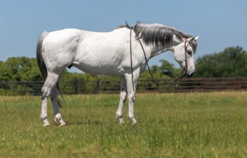 ONLINE AUCTION Place your bids at www.PlatinumEquineAuction.com Starting Bid $3500 Auction ends August 25th, 2024 Need a new saddle? Check out White Rock Saddles on our website or Facebook! “Jack Frost”- 15.2H, 9 year old grade grade quarter horse gelding. We have a super unique set of horses that we get the privilege to offer to the public this spring! “Jack Frost” came off of a pretty popular producer’s set of an upcoming TV series, which is due to be released at the end of 2023/ or in early 2024. “Jack Frost” is about as easy and uncomplicated and automatic as they come. He has exceptionally, insanely smooth gaits – and was purchased for use on this show…because trotting and loping around on him…just does not get any simpler or any more goof-proof, than Jack Frost. We highly recommend that buyers get booked on our schedule to try him ASAP, because you can’t fully appreciate this one without sitting on him and feeling him. They just don’t hardly make a lope any smoother, than this one! He also has a super simple, old school, very finished ranch/rope gelding style handle on him, guides around as easy as they come, and has a great stop, back up, side-pass, lope off, etc. Jack Frost rides around honestly and consistently….even without a bridle. He is super with time off and is the exact same horse, every ride. Jack Frost was ranched and roped on previously, and would make a great fun starter rope horse for a lady, old man, or kid wanting to get miles and have fun. Everyone can’t get over how adorable and sweet this guy is, he is gorgeous and a blast to have around. Jack Frost has been used on sets filming here locally, for the past 6 months. We are NOT allowed to release or share images of these horses on this set, due to respect for the producer’s intellectual property/name/image/publishing rights, this set he was on, is a closed set, on an unreleased series. We wish we could afford to hold all these horses until next spring when this footage has been published and released, it would be so fun to market them with the series out and already been published, but unfortunately we have other sale horses coming in and we just can’t hold them that long. This producer has had absolutely huge success the past several years with his series, this upcoming series …and Jack Frost being shot in scenes for it, will make for some pretty cool bragging rights for his new owner! This series re-tells the story of a western icon. In the producer’s bold and popular style, the story will be re-told in an eye-opening, raw,… and much more historically accurate way. It will be pretty special to own and ride a horse that was used in the production of this series, and will make watching the series when it comes out an especially good time, as you hunt for your own horse in the scenes! A couple of these horses are characters themselves, and main actor’s mounts, and will be very prominently seen in the series. This is a very unique opportunity!!! These special horses aren’t available everyday, and they are very rarely advertised, marketed, and offered directly to the public. Jack Frost is up to date on all cares, was just looked over by our vet, has been seen by the chiro, teeth done by our equine dentist, he was shod just this week, and he was just power packed wormed. Please check back for even more videos to be added to his page in the next 2 weeks! Please call anytime for more information at 214-605-7174 and we will be happy to tell you all about Jack Frost. We would love to meet you in person, show Jack Frost to you, and have you sit on him and feel him for yourself! Jack Frost is located in Weatherford, TX – one hour from Dallas / Fort Worth International Airport. He is an easy day trip or fun overnight trip to come try out, from anywhere! We are experienced, knowledgeable sellers, and we can help with quickly arranging affordable shipping to any buyer’s location Check our website for buyer reviews, more videos, additional info etc: https://busterhorses.com/Jack-Frost please call Buster Horses Ashley 214-605-7174. ONLINE AUCTION Place your bids at www.PlatinumEquineAuction.com Starting Bid $3500 Auction ends August 25th, 2024 Need a new saddle? Check out White Rock Saddles on our website or Facebook!