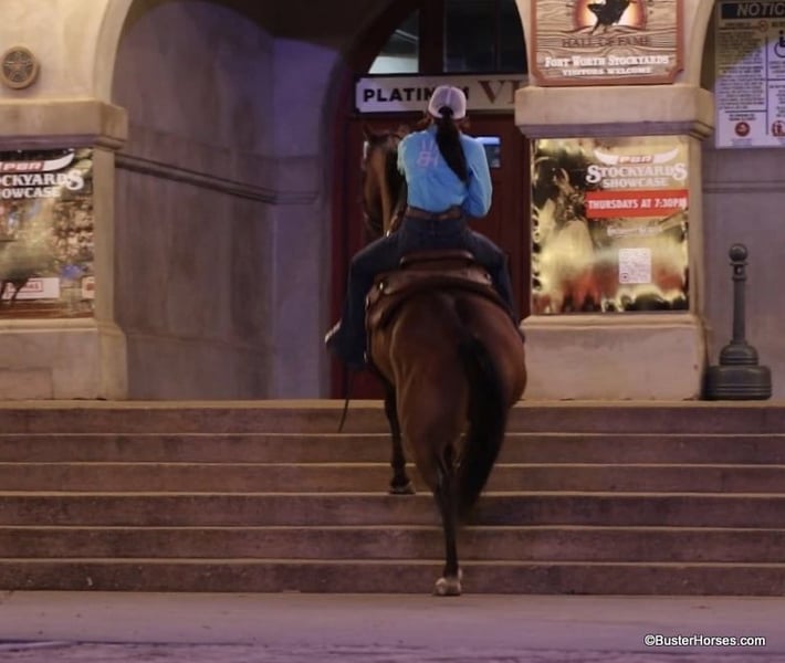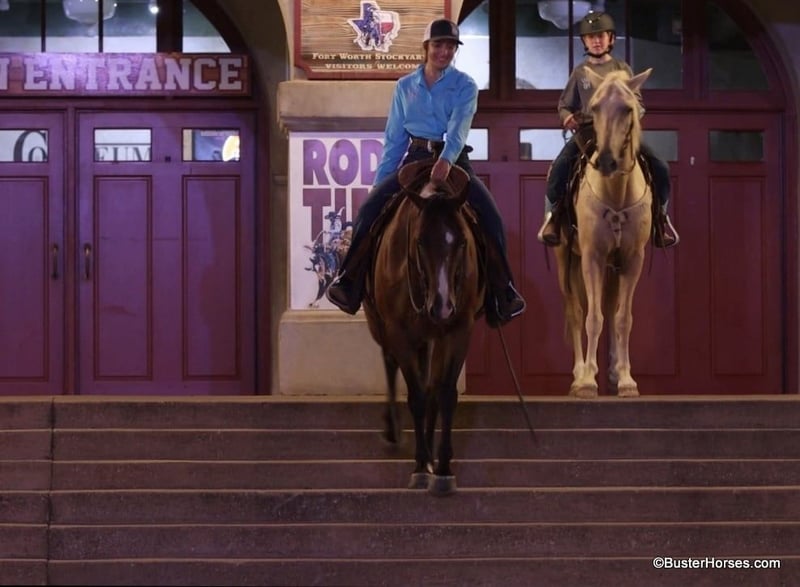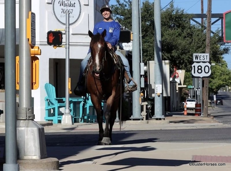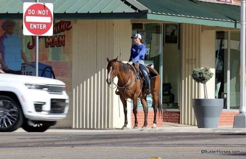 ONLINE AUCTION Place your bids at www.PlatinumEquineAuction.com Starting Bid $3500 Auction ends September 15th, 2024 Need a new saddle? Check out White Rock Saddles on our website or Facebook! Traffic is the perfect age and the perfect height at 15H and 11 years old. He has seen miles and miles and miles of country and knows how to put in a days work. This guy is the same day in and day out and doesn’t matter if you use him every day, once a week, or once a month – he knows his job and is solid and easy. He has a good working handle and nice neck rein, good stop, and he will walk out for miles and miles relaxed with his head down on a long loose rein. Traffic loves being loaded up anywhere you want to go! He would work for someone to get started in the roping pen or the playdays or the barrels, he has been roped on quite a bit in the pens and out in the pasture. Traffic loves going into town and is just about as relaxed as one could be around the road and crowded traffic areas. He has also been on many trail rides on all sorts of terrain. He is good minded and willing at anything you put in front of him. Loves getting in the water. He lives outside with a group of geldings and is always easy to catch, he leads and ties quietly, is easy to pick feet, groom, bathe, saddle and bridle, and he stands dead still for mount and dismount. He hops right on the trailer with no hesitation, hauls quietly, backs off slow and gentle, and ties to the side of the trailer anywhere. This is the solid all-around gelding we get tons of calls on. Call us anytime if you have any questions about Traffic. Traffic was just shod two weeks ago, and he had his teeth done by our equine dentist last week, at that time his ears were preemptively treated for ticks, his sheath was cleaned, and he was also power packed wormed. He is good to shoe, has great large dark feet and also goes well barefoot – if his new owner prefers him to be barefoot, we can have his shoes pulled and trim him prior to him heading to his new home. He will arrive at his new home up-to-date and ready to go to work! We are experienced, knowledgeable sellers, and we can help with quickly arranging affordable shipping to any buyer’s location – we have experience shipping worldwide – including regularly to Hawaii, Canada, Mexico, Europe, and South Africa. Check our website for buyer reviews, additional videos, pics, info, etc: https://busterhorses.com/RWS-Galo-Del-Trafico ONLINE AUCTION Place your bids at www.PlatinumEquineAuction.com Starting Bid $3500 Auction ends September 15th, 2024 Need a new saddle? Check out White Rock Saddles on our website or Facebook!
