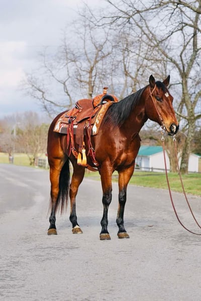 ONLINE AUCTION Place your bids at www.PlatinumEquineAuction.com Starting Bid $3500 Auction ends January 19th, 2025 Need a new saddle? Check out White Rock Saddles on our website or Facebook! 12 YEAR OLD BAY RANCH GELDING! Alan stands around 15.1 and is a blast to have around! We have used this gelding for trail riding and taking him to over night camping trips! He will cross the creeks and logs with ease and absolutely loves his job! This gelding has been rode English and Western and will take both of his leads and is a beautiful mover! Alan has a very nice neck rein and will go as fast or as slow as you wanna go! We have used him to check fence around the farm and check cattle! He will go any direction you point him! He Loads,Clips,Bathes, and will be the first one up to you in the pasture! He rides one handed and has more buttons than an airplane! He has a great stop,back up,and side pass! This gelding is ready for his new loving home and would make someone a great companion! Located in Rineyville Ky! Call Izaiah Ryan 270-505-9512. ONLINE AUCTION Place your bids at www.PlatinumEquineAuction.com Starting Bid $3500 Auction ends January 19th, 2025 Need a new saddle? Check out White Rock Saddles on our website or Facebook!