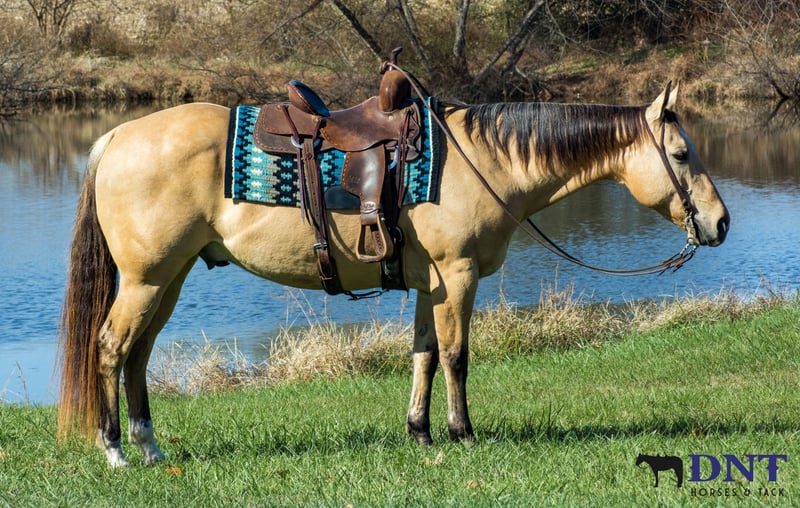 ⚜️ 𝓽𝓱𝓮 𝐇𝐨𝐫𝐬𝐞𝐦𝐚𝐧'𝐬 𝓢𝓱𝓸𝔀𝓬𝓪𝓼𝓮⚜️ Happening now thru MONDAY | DECEMBER 1st - Available EXCLUSIVELY on HorseBid's website! For more details and to register visit: www.Horsebid.com CONSIGNOR CONTACT: DNT Horses 270-844-2400 LOCATION: Henderson, KY BREED: Quarter Horse REGISTERED: Yes REGISTERED NAME: Rainbow Orphan San COLOR: Dun HEIGHT: 14.3 AGE: 14 GENDER: Gelding “Rainbow Orphan San” aka Odin checks every box you could possibly think of in finding that perfect horse. He is what everyone dreams of owning in a trail horse. “RAINBOW ORPHAN SAN” aka Odin is a 2011 model gorgeous Dun Gelding. He stands 14.3hh tall with a solid and correct build. If you are looking for a Safe, Trustworthy, Reliable, Sane, Been there done that, and Sound partner! Look absolutely no further! Checking all the boxes to find your dream horse, check out Odin the search is over! Odin is the kind everyone wants! He is honest, easy-going, and one anyone can enjoy! Anyone from the whole family, Kids, Grandma, Friend of a friend who has never rode, or your unknowledgeable wife or husband! Odin is the kind you can let sit for days, weeks, or months and he will always be the same, just like he’s been ridden every day! Odin is kind and patient. He is one that can put up with just about anything, Screaming Kids, Barking Dogs, Farm equipment, Fireworks, Sirens, and Traffic! He is the most genuine horse I have ever been around! He handles everything with confidence and will surely take care of any rider that is lacking such. He is like a seasoned babysitter! Odin rides excellent in or out of the arena. He will walk, trot, and canter. He picks up both of his leads. He will neck rein, backup, side pass and works off leg pressure. Odin is an easy ride no need for any training! He is soft in the bridle, takes a light or heavy hand with no fuss. He never gets hot or silly. He has the rarest old soul for a horse with lots of life! Odin has been around cows and he could be the perfect pick to take to a sorting or go gather cattle on the ranch. Odin has been trail rode extensively and is one that everyone chooses to take from the barn! He goes wherever you point him. He crosses over logs, bridges, obstacles and loves to go through water! He will ride alone or with a group! You can ride him bareback or with a saddle whichever you chose. Whether you are 5 or 85 he will take care of you every step of the way! Odin is just perfect in every aspect you can think of! Odin has been through the police academy and has worked on the police force as well. So, he is used to all kinds of noises and surprises. He does not get excited over anything. Odin will stand at a mounting block, large log, picnic table, trailer side or truck side for you to get on him. He stands to get saddled, unsaddled, mounted, and dismounted from! He loves attention, such as being brushed and bathed. Odin is easy to catch he will greet you at the gate. He stands quietly for the farrier. He loads and unloads on and off the trailer. He is a true saint! Odin is the type of horse that doesn’t come around often, he is the kind everyone dreams about owning! Well, here he is! Check out his Video! Feel free to reach out to Tasha 270-844-2400 A PPE is welcome at the buyer’s expense. Odin will come with a current coggins, UTD on vaccines and health certificate! Don’t hesitate to call and make an appointment to come, try him! Odin is one you don’t want to miss!