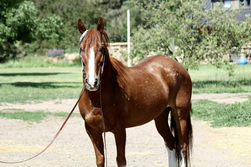 ONLINE AUCTION Place your bids at www.PlatinumEquineAuction.com Starting Bid $3500 Auction ends June 29th, 2025 Need a new saddle? Check out White Rock Saddles on our website or Facebook! 2011 Sorrel Mustang Gelding | Flashy Chrome | Seasoned Trail Horse with Personality… Candy Cane is a 2011 sorrel mustang gelding with plenty of chrome and a larger-than-life personality. He’s the kind of horse that turns heads and wins hearts wherever he goes. Energetic, enthusiastic, and full of character, Candy Cane is a true all-around partner who’s always ready for the next adventure. He absolutely loves having a job and is happiest when he’s working. With his great motor and forward-thinking attitude, Candy Cane is the type of horse that can go all day and still be eager for more. He’s been used extensively on the trail and has proven to be reliable in a wide variety of settings. Whether you’re riding alone or in a group, he’s confident, surefooted, and steady. He’s even ridden straight through downtown Fort Collins without batting an eye — completely unfazed by traffic, bikes, strollers, dogs, pedestrians, or crowds. In the arena, Candy Cane has a solid foundation. He knows his leads, stops off voice cues, performs a smooth rollback into the rail, and carries a comfortable, slow jog. He’s also been ridden English and bareback, showing his versatility and easygoing nature. Whether you’re headed into the hills or warming up in the ring, he’s ready to meet the moment. Candy Cane has been exposed to a wide range of obstacles and activities. He’s carried a flag, crossed tarps without hesitation, been hitched to pull a wagon, and even gone swimming. His boldness and curiosity make him a joy to ride in unfamiliar settings, and he handles new experiences with enthusiasm. He’s also incredibly personable on the ground. Candy Cane is easy to catch, enjoys being bathed, and thrives on attention. He’s got a goofy, affectionate personality and thinks every horse is his new best friend. He doesn’t need to be lunged before riding — just saddle up and go. Candy Cane is truly a one-of-a-kind gelding with heart, ability, and a personality that keeps things fun. If you’re looking for a horse that’s trail seasoned, versatile, and full of character, he’s ready to be your next partner. Feel free to reach out with any questions or to schedule a time to come meet this sweet and spirited guy. His video is available to watch — don’t miss the chance to see him in action. Contact Dynamite Horses Thea 970-632-6344 with any questions. Located in Fort Collins, CO. ONLINE AUCTION Place your bids at www.PlatinumEquineAuction.com Starting Bid $3500 Auction ends June 29th, 2025 Need a new saddle? Check out White Rock Saddles on our website or Facebook!