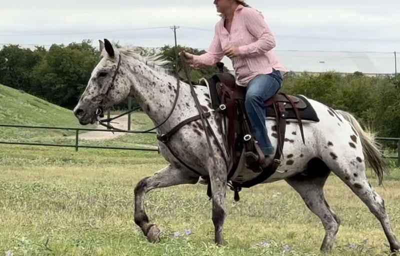 ONLINE AUCTION Place your bids at www.PlatinumEquineAuction.com Starting Bid $3500 Auction ends September 29th, 2024 Need a new saddle? Check out White Rock Saddles on our website or Facebook! “Santo” is a 14.1H, 14 yr old Appaloosa gelding. If you’re looking for the best of the best when it comes to color, safety, ease to handle/ride, personality and gentleness, they just simply don’t come better than Santo. He’s an absolute SAINT the whole family can enjoy. The very smallest babies up to the novice adults will be safe on this guy! He is extremely easy to ride, neck reins perfectly, switches gaits only when asked, stop when he’s told to and has absolutely ZERO buck, bolt, rear or spook. Santo has been with a family full of kids and has done all the things kids can think of on their trusty steed. He’s dabbled in the play day events, seen countless amounts of trails, roped some slow cattle, and even been jumped! He would be the perfect first horse or horse for a kid looking to go have fun with something experienced in practically everything! Santo would also be the perfect trail/pleasure horse for anyone needing a safe, predictable, COMFORTABLE, sure footed, sane mount. Leave him off a day or 6 months and he’s the same horse every time. He is so much fun to ride and will put a smile on anyone’s face that swings a leg over him! He has one of the best people pleasing personalities and is so SWEET!! He loads, leads, stands, and ties great. He’s traffic, car, crane, golf cart, city, Santo is UTD with teeth, feet and coggins and ready to go to his new family! You won’t want to miss this gorgeous gelding that is sure to keep anyone obsessed with going to the barn to ride! Go to his website page northtexashorsecompany.com/santo for more pictures and footage! Please call Blair with North Texas Horse Company for more info at 817-757-3046. We are located in Weatherford, TX and can help arrange affordable shipping to anyone!! ONLINE AUCTION Place your bids at www.PlatinumEquineAuction.com Starting Bid $3500 Auction ends September 29th, 2024 Need a new saddle? Check out White Rock Saddles on our website or Facebook!