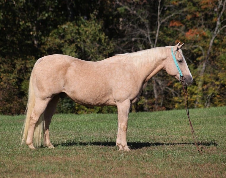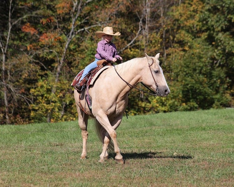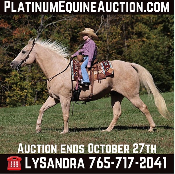 ONLINE AUCTION Place your bids at www.PlatinumEquineAuction.com Starting Bid $3500 Auction ends October 27th, 2024 Need a new saddle? Check out White Rock Saddles on our website or Facebook! If you need a total confidence builder, a horse that will take care of you where ever you may go, a horse that is on AUTO-PILOT… Lariat is the horse for you!!! Since owning Lariat he has been our 6 year old daughters main horse. She has had him camping, trail riding, rode out and checked the cows on him, you name it and she can do it with him! We have walked out in the pasture and caught him after not being ridden for a month and our daughter has ridden him bareback in a halter, back to the barn while the other horses run or trot around him. Lariat has proven himself time and time again as a confidence builder that has been kid safe for our girl. He is so easy to ride that he is simply automatic… you think it and he does it for you. He will rein around easily with one hand, he will open/shut gates, lopes off easily and is very smooth in his lope as well. He has a good stop, he lopes nice circles and rides on a loose/draped rein or even in a halter. He is a pretty palomino color and has that friendly personality that everyone wants! Lariat stadns around 15H, is stocky built and is 15 years young and everyone always wants a horse that is broke like him but only 5 years old… NEWS FLASH folks- the miles and experience makes the horse, so Lariats years of experience are what makes him so great and trustworthy! He is ready to go hit the trails, work on the ranch or go ride in 4-H. He has done it all out on the ranch! He has pasture roped and doctored sick ones, sorted pairs as well! Lariat has been ridden in multiple states from Oklahoma to Kentucky. He will cross creeks, ditches, logs and navigate rough rocky areas. Lariat has zero spook in him, no matter where you take him he is a steady Eddie! He is super quiet on the ground as well and is easy to bathe, clean his feet and tack up. He has been exposed to all kinds of wildlife such as deer or turkey or other animals like cows or dogs and will go anywhere that he is asked too. He has been rode many miles in the mountains of Eastern Kentucky and encountered every obstacle possible on the trail. He has zero bad habits, no cribbing, weaving, is not cinchy and has absolutely no buck in him! I’m not sure what safety is worth to you but Lariat is 100% safe for total beginners, guest riders and kids of all ages to ride. He is the type of horse that can make a new rider grandma feel like and look like a cowgirl and a horse that will be a family favorite for years to come! Buy It Now offers are considered, test rides are welcomed! Feel free to call Lucky 13 Equine LySandra 765-717-2041 with any questions. Located in Brodhead, KY. ONLINE AUCTION Place your bids at www.PlatinumEquineAuction.com Starting Bid $3500 Auction ends October 27th, 2024 Need a new saddle? Check out White Rock Saddles on our website or Facebook!
