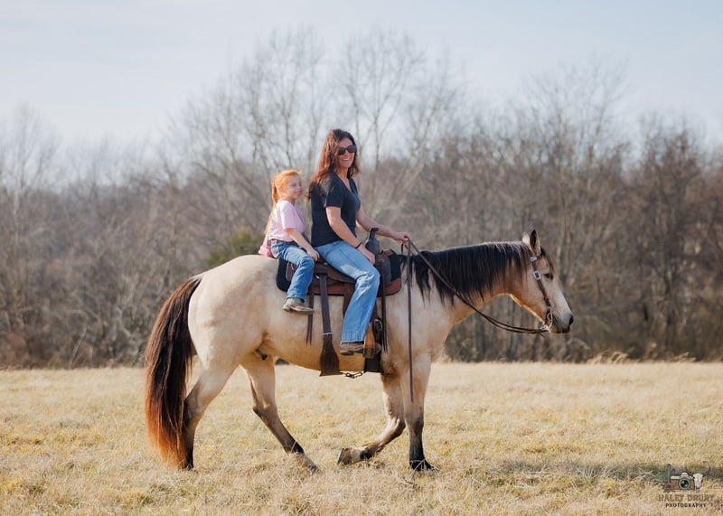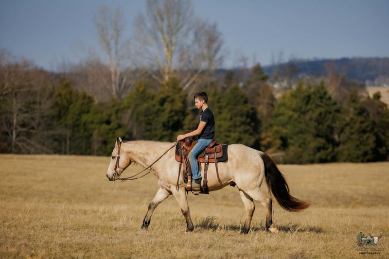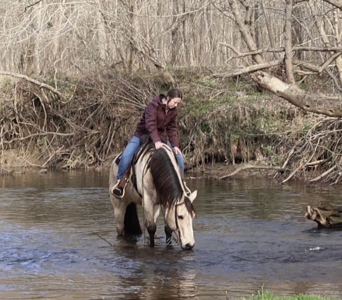 💎 𝐓𝐇𝐄 𝓓𝓲𝓪𝓶𝓸𝓷𝓭 𝐒𝐇𝐎𝐖𝐂𝐀𝐒𝐄 💎 Happening now thru MONDAY | FEBRUARY 23rd - Available EXCLUSIVELY on HorseBid's website! For more details and to register visit: www.Horsebid.com CONSIGNOR CONTACT: Jamie Thomason 270-772-1706 LOCATION: Auburn, KY BREED: Quarter Horse REGISTERED: No COLOR: Buckskin HEIGHT: 14.3 AGE: 18 GENDER: Gelding Seasoned on the trail, a “been there, seen that” kind of horse. Dillon is an 18 yr old, Buckskin, QH gelding, standing 14.3 hands tall. Dillon rides out alone or settles happily into a group, content to follow along all day at whatever pace you set. He would easily be something you could put a less experienced rider on to pony along/have them follow & not have to worry. Water, downfall, steep inclines, and bridges are all taken in stride. We’ve hauled Dillon to state parks for day rides, and he always delivers a steady, enjoyable experience. He’s the same mount whether you’re exploring wooded paths or taking leisurely rides across open country. My daughter has ridden Dillon bareback through town, down the streets, up ramps, and even down steps without a worry. Traffic, semis, bicycles, none of it phases him. On cold, windy days that might unsettle a younger horse, Dillon saddles up and rides off across open pastures relaxed and steady. He offers an easy walk, trot, and canter, picks up his leads , yet naturally a more “whoa” than “go” style. Uncomplicated to ride & tolerant of mixed cues. Dillon is a pleasure to have around the farm. He can be stalled or perfectly content living outside 24/7 in a mixed herd. Typically lower on the pecking order and drama-free. He gets along with anything we’ve turned him out with. And my favorite quality, he is incredibly easy to catch. I often joke that he catches me. If he sees me step outside or hears my truck coming down the drive, he’s already on his way to meet me. He loads and hauls with ease, enjoys grooming, and is simply one you don’t mind to have around. If you would like to meet Dillon prior to adding him to your family or have any additional questions, feel free to reach out! Dillon sells current on all cares & we can assist in arranging shipping to anywhere!