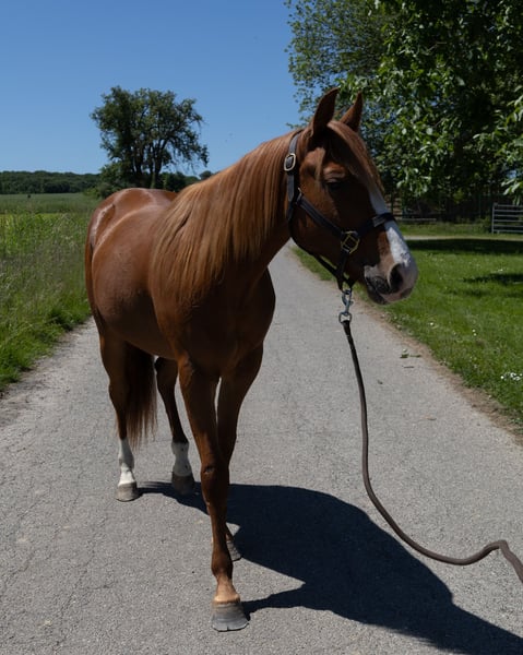 À vendre (en mandat) : ce joli hongre Quarter Horse de 2 ans, nommé « RN DIAMOND JOY », surnommé « Diamond ». Il mesure actuellement 1,47 m et devrait encore grandir, comme en témoignent déjà ses longues jambes ! Il possède de très belles allures, est vif et montre dès maintenant un bon équilibre au trot et au galop pour son âge. Il est naturellement pieds nus et apprend actuellement les bases du poulain/jeune cheval. Il connaît : - Le pansage à l’attache - La remise des pieds - La douche - Le brossage - Le selle - Le travail à pied - La promenade - Le travail en main en extérieur - La ferrure Il est très gentil en main et fait preuve d’un fort désir de plaire. Il est prêt à être visité et deviendra sûrement un partenaire très fiable, que ce soit pour le sport ou la balade. Il possède des papiers AQHA, un test ADN à 7 panels ainsi qu’un passeport européen. Des vidéos de lui en mouvement peuvent volontiers être envoyées.