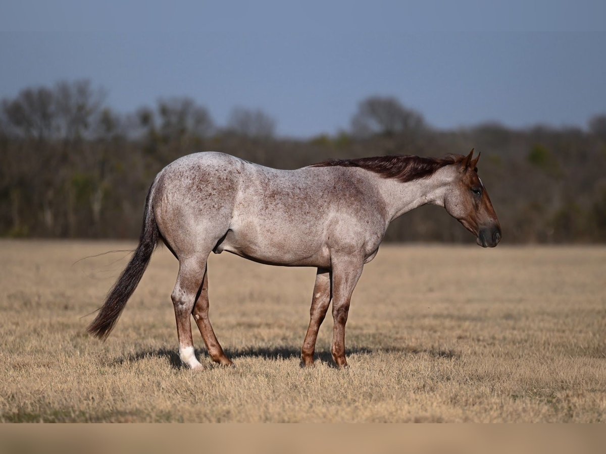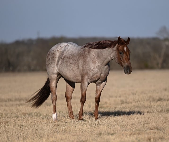 Peewee, 3 jaar oud, 1,42 m, rood-roan AQHA ruin