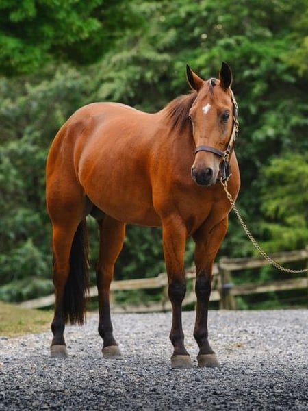 🎲𝓽𝓱𝓮 𝐑𝐈𝐃𝐄𝐑'𝐒 𝓒𝓱𝓸𝓲𝓬𝓮🎲 Happening now thru MONDAY | NOVEMBER 17th - Available EXCLUSIVELY on HorseBid's website! For more details and to register visit: www.Horsebid.com CONSIGNOR CONTACT: Triple R Horses 610-806-2613 LOCATION: New Holland PA BREED: AQHA REGISTERED: Yes REGISTERED NAME: Two Gun Whiz COLOR: Bay HEIGHT: 14.3 AGE: 3 GENDER: Gelding “Two Gun Whiz” aka “Ransom” is a three year old, 14.3hh, AQHA gelding who is a huge puppy dog, extremely versatile, and safe for the whole family! Are you looking for a horse to take you to the show pen, then the next day pack your kids or husband around in the ring or on the trails? Don’t be afraid of his age, Ransom is an old soul who loves to please and enjoys spending time with his humans. Not only is Ransom incredibly kind and honest, he has a spectacular pedigree full of top quality, money earning horses. Here is a unique gelding, with something for everyone!!! In the barn, Ransom has zero bad habits. He is as quiet as a mouse in his stall and never asks for anything. He is extremely gentle to work around and safe for beginners and children to work with, run around, groom, etc. He could care less about a busy barn alley with pups running all around him. Ransom stands on the cross ties to be groomed, tacked, bathed, and absolutely loves attention. He will fall asleep while having his mane braided. You can play all around him, sit on his back while grooming him, crawl under him, he is just happy to be involved. Ransom is a baby sitter in the pasture, he gets along with every single horse and causes absolutely zero drama. He is the first one to approach you in the pasture. He can live out in a mixed herd and also doesn’t mind living alone. His pasture has a large section of woods and a creek, and every single day, he takes himself for a stroll through the woods, and can even be found napping in a sunny spot in the middle of the woods. He is very independent and stress free. Ransom has great ground manners, and can be handled by anyone. Ransom absolutely loves trail riding and he is safe for anyone on the trails. I have been throwing guests on him for trail rides, and he takes care of his rider like an old pro. I would put my grandmother on him and trust that he will be safe, and gentle. Ransom will lead, follow, go alone and in groups. He is not the slightest bit spooky, and he will be a brave leader through obstacles when asked. He crosses water, bridges, logs, rocks, and is safe with my pups trailing his heels. We kicked up pheasant not even two feet from us in a field and I had an older, beginner lady on him, and even though my horse spooked and spun, Ransom didn’t even bat an eye. I couldn’t have asked for a better horse in that situation. We have also had deer jump out in front of us, and again, Ransom paid no mind. Ransom is the type of horse that you can throw into the middle or the back and his rider can ride on the buckle the whole time, he will follow the crew. He doesn’t jog to stay caught up, he doesn’t mind if the group leaves him. Ransom makes a great guest horse and would be an awesome camping partner. With his great demeanor and level of quietness on the trails, I could see Ransom being a fantastic hunt mount as well. Ransom rides western, english and bareback. He does not have a preference. He does not need to be in a routine. He can sit for weeks, tack up and go with no silly business. He is the type of horse that your kids could go climb all over in the pasture. He rides in a snaffle, shank, bosal, halter and lead, and a neck rope. I have even played around with completely tack less. He is the perfect combo of whoa and go, quiet and laid back, yet goes to work when asked. You can ride him with no spurs, or spurs. Two handed or one handed. He is responsive to your aids, yet knows when he has a child or beginner on him, he will dull his responses way down. How many three year olds are capable of doing that?! Not only is he extremely intelligent and loves to learn, he is also very forgiving and does not get up set if his rider is off balance or handsy. Despite Ransom being a reining/cow bred type of QH, he is actually very uphill, setting him up for versatility in every discipline. He has enough shoulder and neck to balance a kid, or go succeed in the english world! He has beautiful gaits, and he is very adjustable to each rider and discipline. Ransom has entertained many different riders in his time with me, he bonds nicely with each rider, whether new or have been riding him for a while. I truly feel that this horse was born broke. He has had a very easy start in life, he has not been drilled, he has not been pushed, he is just incredibly intelligent, and quick to learn. Another thing I love about Ransom is that I can pull him in from the pasture and throw him in a stall, in an empty barn and he doesn’t not pace or holler for his friends. He just simply does not care if he is alone or not. In the ring, Ransom will walk, jog, trot, lope, canter, gallop, knows his leads and has a lead change. He moves laterally off of leg, bends around your leg, has great lead departures, he will move his forehand and hind quarters, side pass, neck rein, ride solely off of your leg, started on a nice turn around and started on a slide stop. Bring your legs forward and he will go into reverse. You can ride him collected or on the buckle. You can adjust his head set for different styles of riding. Bring him down slowly through the gaits or ask for that big whoa. He is not going to stop hard or spin a beginner or kid off, he knows the difference in cues. When I tell you this horse is smart and unique, I mean it. He is soft in your hands, and pays attention to his rider. Yet doesn’t get confused nor upset when a beginner or kid is in his face, or using the reins to balance. His attitude is unbeatable. I do not get ride reining trained horses often, and I quite frankly don’t k