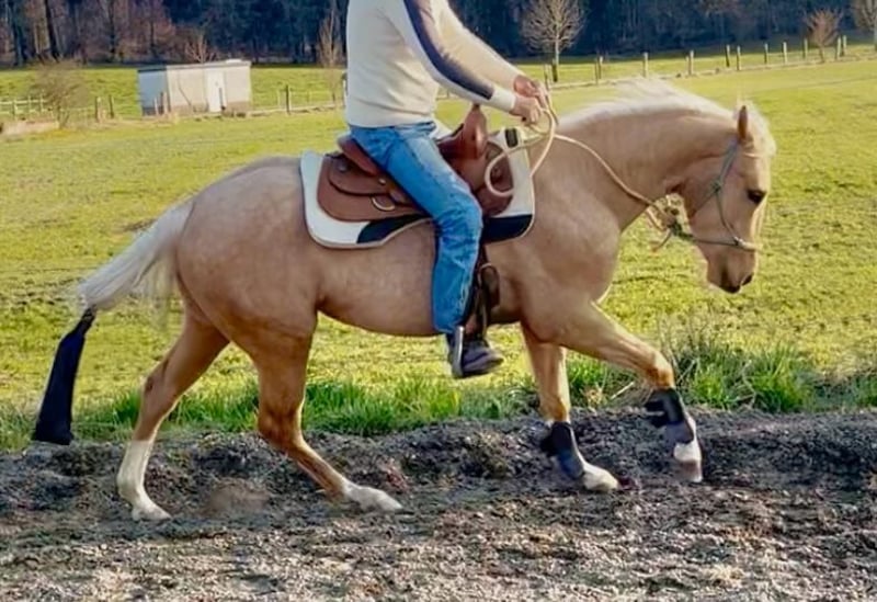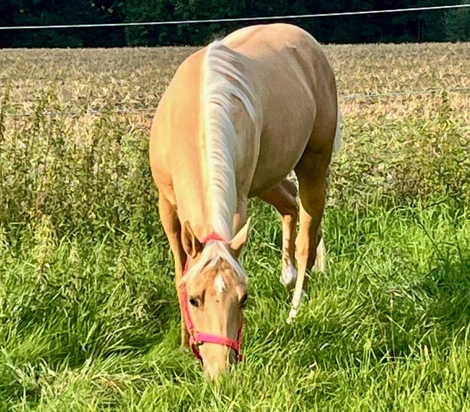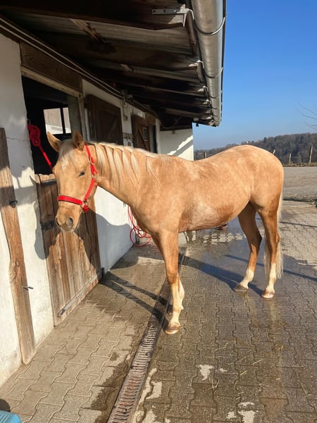 All around 3 jähriger braver Quarter Horse Wallach in der schönen Farbe Palomino sucht seinen Menschen! Barhuf Kennt Box/Koppel Stckm 155 cm Kennt Bodenarbeit Angeritten (Schritt/Trab/Galopp) Eher faul aber motiviert unterm Sattel 5 Pannel/negativ über die Eltern Gesund Bei ernsthaftem Interesse gerne mehr Infos/Videos etc.... unter 0179/4075376