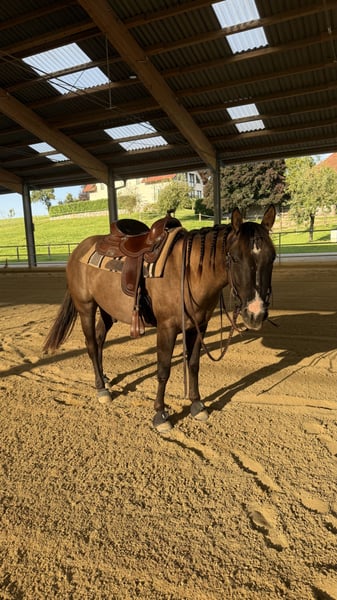Shinin Manngold, alias Buddy... è di mia proprietà da circa un anno e mezzo. È un vero sogno di cavallo... Molto mansueto nel rapporto con l'uomo. Fabbro e veterinario non sono un problema... Va anche tranquillamente in trailer. Molto bravo in passeggiata in gruppo e anche da solo! In primavera 2025, quando avrebbe dovuto iniziare l'addestramento, purtroppo abbiamo ricevuto la diagnosi di artrosi (spat)... Per questo motivo viene venduto come cavallo da compagnia! Prezzo ovviamente trattabile! La priorità è il posto, non il prezzo! Contattatemi pure, sono disponibile a fornire ulteriori informazioni.