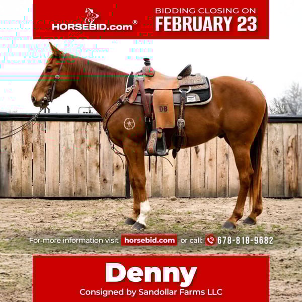 💎 𝐓𝐇𝐄 𝓓𝓲𝓪𝓶𝓸𝓷𝓭 𝐒𝐇𝐎𝐖𝐂𝐀𝐒𝐄 💎 Happening now thru MONDAY | FEBRUARY 23rd - Available EXCLUSIVELY on HorseBid's website! For more details and to register visit: www.Horsebid.com CONSIGNOR CONTACT: Sandollar Farms LLC 678-818-9682 LOCATION: Checotah OK BREED: Quarter horse REGISTERED: Yes REGISTERED NAME: Streakin Fling Tafam COLOR: Sorrel HEIGHT: 15 AGE: 4 GENDER: Gelding Streakin Fling Tafam, a 2022 Sorrel Gelding, 15 Hands, AQHA Registered and Ranch Heritage Eligible. Grand-sired by the legendary A Streak Of Fling (progeny earnings exceeding $8.5 million), Denny’s pedigree is stacked with powerhouse names including Dash Ta Fame with (progeny earnings exceeding 35.5 million), Streakin Six with (progeny earnings $17.3 million, Smart Like Juice with (progeny earnings exceeding 4.2 million) and a NRHA Hall of Fame inductee. This is a gelding bred to be quick across the line, rate hard, and finish with power. Denny is ready to go in any direction: heading, heeling, tie down, or breakaway. He is solid in the box, leaves flat, naturally quick footed and has a big, powerful stop. Roping has come very naturally to him, and he tracks livestock confidently. Denny has real world experience, rides out well with the herd, doctoring calves and ranch work. Willing to cross any terrain, he’s sensitive and responsive without being overly reactive. Denny’s easy to handle, loads and hauls well, and has the kind of foot and bone that holds up. An overall well bred gelding with strong AQHA bloodlines, an athletic build, and the foundation to excel whether you want to rope, ranch, or develop him further in the performance pen.