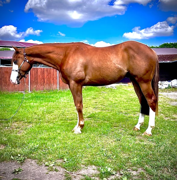 ❗️OFFERED FOR YOUR CONSIDERATION❗️ ⭐️Inferno⭐️ Inferno ist ein 2022 geborener Quarter Horse Wallach. Er ist gut Grundausgebildet mit bereits fortgeschrittenen Reiningmanövern und befindet sich auf dem Wege ein vielversprechendes Showpferd zu werden. Inferno deckt auch große Reiter sehr gut ab, er ist überaus lieb im Umgang und verlade-sowie schmiedefromm. Als ausdrucksstarkes Pferd mit dem besonderem Look, auffälliger Blesse, toller Farbe und viel Behang ist er immer ein Blickfang. Inferno ist NRHA Germany und European nominated. Dam: Cocky Pepita Ist von Arc Genuine Oak und wurde Reining geshowt, ihre Nachzucht läuft Erfolgreich. Sire: INFERNO SIXTYSIX LTE: over 220.000$ PE: over 5.000.000 $ Bei Interesse dürfen Sie uns gerne kontaktieren. 0173/7164511 0171/6840395 Standort: 31595 Steyerberg