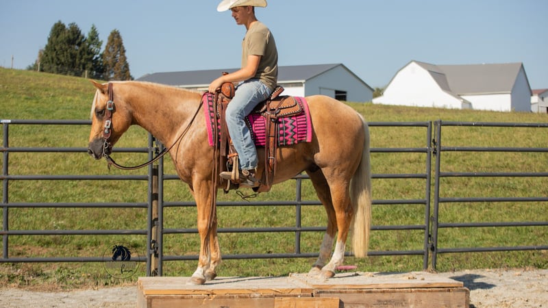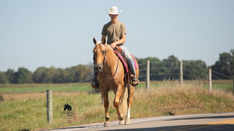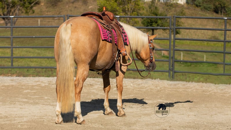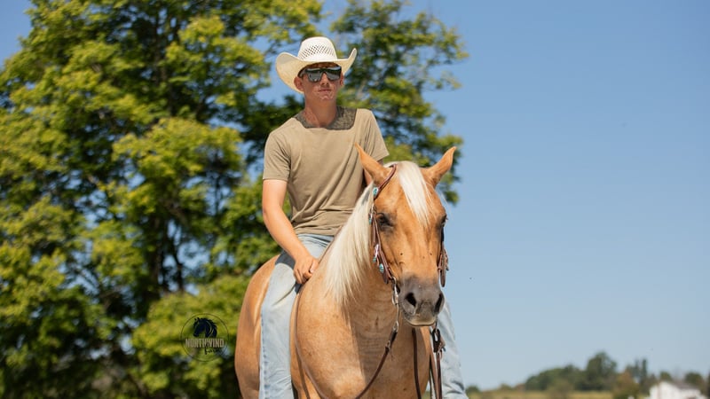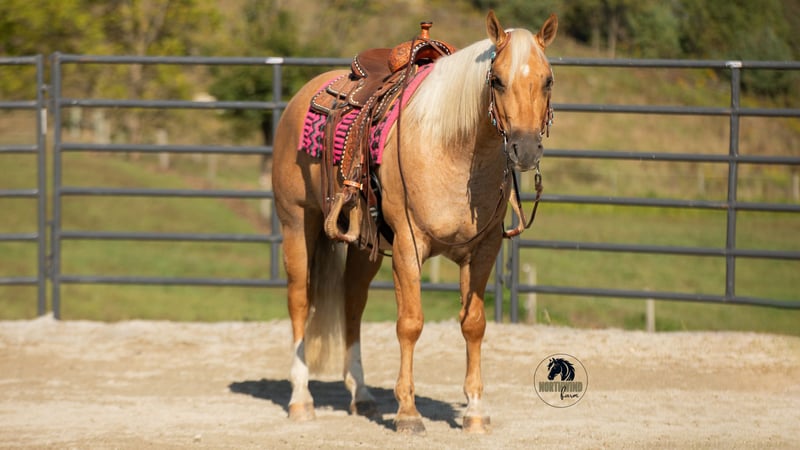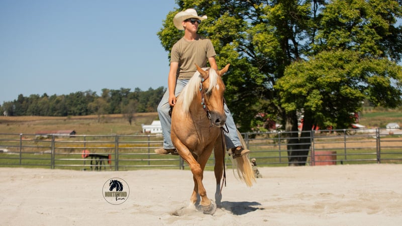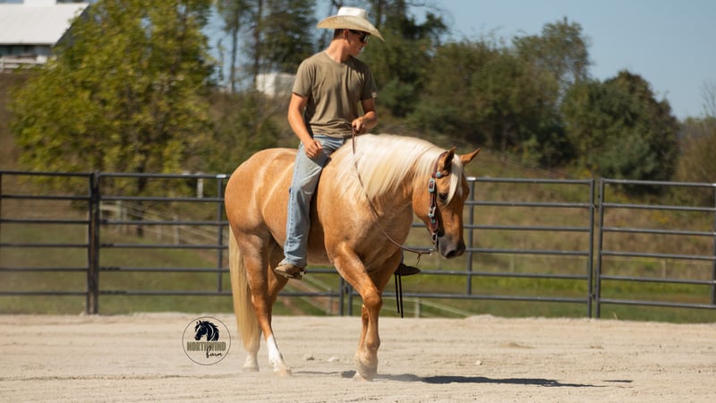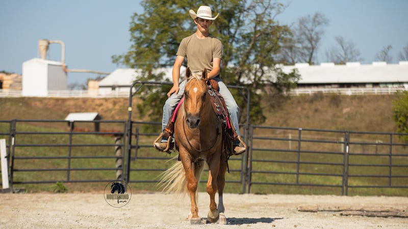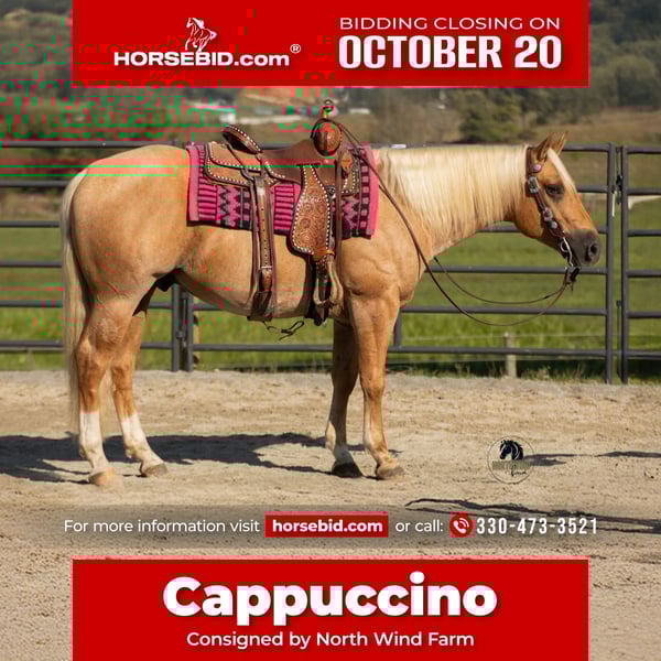 ♦️ 𝐭𝐡𝐞 𝐀𝐌𝐄𝐑𝐈𝐂𝐀𝐍 𝓕𝓪𝓵𝓵 𝓒𝓵𝓪𝓼𝓼𝓲𝓬 ♦️ Happening now thru MONDAY | OCTOBER 20th - Available EXCLUSIVELY on HorseBid's website! For more details and to register visit: www.Horsebid.com CONSIGNOR CONTACT: North wind farm 330-473-3521 LOCATION: Fredericksburg, OH BREED: Aqha REGISTERED: Yes REGISTERED NAME: Kid Cloudy COLOR: Palomino HEIGHT: 15.1 AGE: 4 GENDER: Gelding Kid Cloudy, “Cappuccino” is a 4 yr old registered AQHA gelding standing at 15hh. Cappuccino is well broke to ride and would make a great all around horse! He is very willing and fun to ride. He can be turned out with other horses and is easy to catch in the field! He stands nicely to be groomed and for tacking up. He loves attention and getting bathes. He loads into the trailer and travels well! He has a smooth and easy walk, trot, canter. He has a nice slow lope, he moves off of leg pressure and neck reins. He will pick up both leads, he stops good, and backs up nicely! He has a slow pivot and a nice side pass. He will go through all the obstacles, he isn’t scared of the tarp or the ball. He steps on to the tires and the block. He will cross the bridge as well. He will drag the log and doesn’t mind having a rope thrown off of her. Cappuccino is very well mannered and a lot of brains. He is great out on the trails. He crosses creeks, steps over logs and is surefooted going up and down the hills. He is calm and collected, and is spooky at all. He has been rode on the road and doesn’t mind the traffic. He is also used to being around dogs! He stands good for mounting as well! Cappuccino is a nice quiet gelding, that’s safe for anyone to ride! He is 100% sound and healthy! ⭐️North Wind Farm is renowned for its quality trail and all-around horses. Our horses are versatile and can excel in any discipline, making them perfect for riders of all levels. Whether you're looking for a reliable trail companion or a horse that can perform in various disciplines, North Wind Farm has the perfect match for you. Our commitment to excellence and passion for equine care ensures that each horse is well-trained, healthy, and ready to meet your needs. Contact us @ Tim (330) 600-8840 Lisa (330) 473-3521.