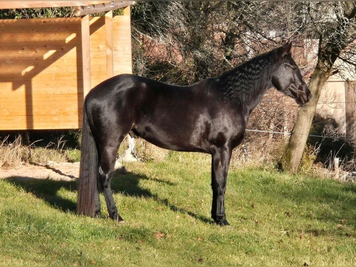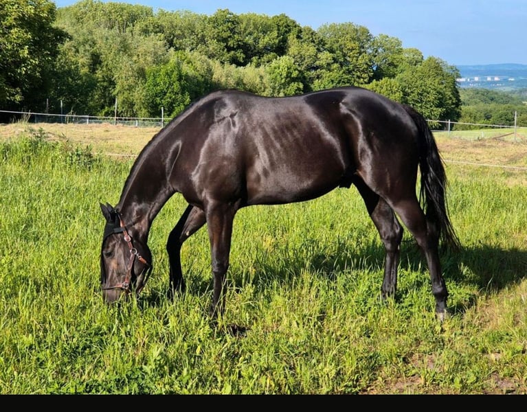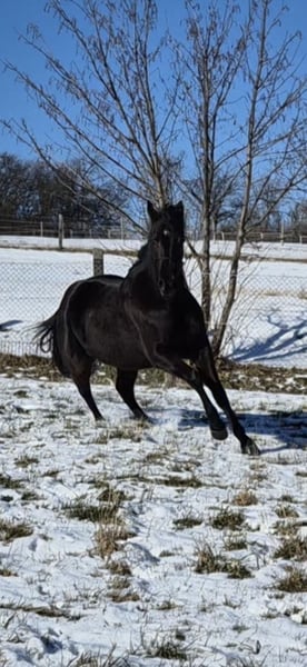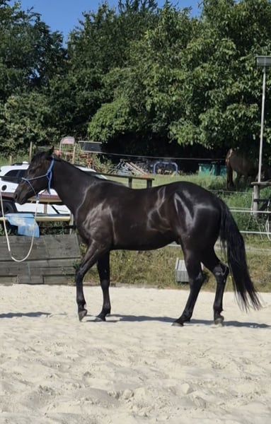 Wunderschöner, vierjährige Quarter Horse Rappwallach, momentan 1.55m groß zu verkaufen. Er wurde Ende 3 jährig schonend angeritten und befindet sich auf solidem Basisniveau. Jetzt 4jährig war er auch bereits mit im Gelände, was er mit viel Freude und der nötigen Gelassenheit macht. Dabei hat er ein angenehmes ausgeglichenes Go, ist eher der ruhige Typ. Im Umgang ist er absolut unkompliziert, hat ein ruhiges und verlässliches Wesen. Ob als gehobenes Freizeitpferd oder für den Sport, er kann beides sein. Er bringt alle Voraussetzungen für den Allroundbereich mit. Er war bereits außerhalb auf Kursen dabei, wobei er absolut cool und entspannt ist. Er kennt die Basics der Bodenarbeit, wird im Natural Horsemanship gearbeitet und und weiter ausgebildet. Hängerfahren, Schmied, Impfen, alles kein Problem. Er ist Tetanus und Influenza geimpft. Er ist barhuf und wird aller 8 Wochen dem Schmied vorgestellt. Dabei ist er immer artig. Der jährlicher Routinecheck beim Zahnarzt 2025 sowie der jährliche Routinecheck beim Osteopathen war ohne Auffälligkeiten. Er ist sehr zutraulich, neugierig und menschenbezogen und eher der relaxte Typ. Er hört gut auf seinen Namen und kommt gemütlich angeschlendert wenn man ihn ruft. Auf Grund seines Alters nicht an Anfänger oder Wiedereinsteiger. Er arbeitet immer motiviert und konzentriert mit, bemüht sich, alles richtig zu machen. Er kann mit Knotenhalfter genauso wie auf Trense geritten werden. Kennt Seitengänge, Vorhand und Hinterhandwendungen, steht brav beim Aufsitzen. Kennt Doppellonge, rangiert alleine an die Aufsteighilfe und wartet artig bis es losgeht. Fahren vom Boden, Verladen klappt sehr gut, fährt problemlos Anhänger. Manöver wurden bisher bewusst noch nicht abgefragt, da sein weiterer Weg alters und pferdegerecht aufgebaut werden soll. Er ist sehr sozial und in der Herde im mittleren Rang. Er sucht keinen Streit, geht diesem lieber aus dem Weg. Er lebt in Offenstallhaltung und das soll auch unbedingt so weitergeführt werden. Er kennt Straßenverkehr, Traktoren und jegliches landwirtschaftliche Gefährt, damit geht er sehr souverän um. Er hat einen tollen Jog und einen butterweichen Galopp. Er ist ein kleiner Rohdiamant, welcher bei weiterer guter Ausbildung viel Freude machen wird. Er hat volle Papiere und einen Pass von der AQHA (American Quarter Horse Assoziation) 5-Panel-Test Papiere und Videos können auf Anfrage gerne zur Ansicht bereitgestellt werden. Ab März geht er in Beritt und somit wird der Preis dann angepasst. Standort Nähe Dresden/Sachsen