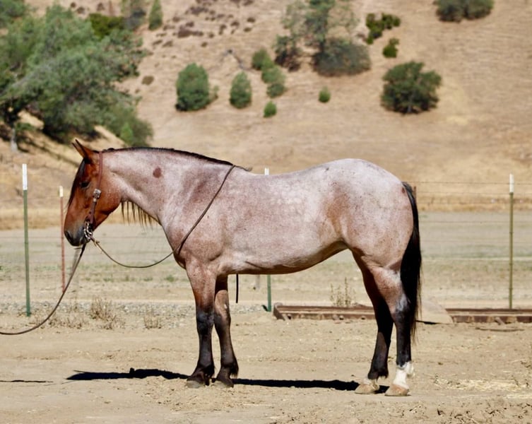 ONLINE AUCTION Place your bids at www.PlatinumEquineAuction.com Starting Bid $3500 Auction ends September 14th, 2025 Need a new saddle? Check out White Rock Saddles on our website or Facebook Bandita is a 4-year-old, 14.2 hand roan mare that is as solid and eye-catching as they come. Built thick, strong, and correct, she’s got big bone, great feet, and the kind of foundation that makes her ready for a lifetime of work. Bandita has been ranched born and raised, being a dignified ranch horse, handling every chore thrown her way. From gathering cattle to roping in the pasture, she is dependable and confident. If there’s a job horse back, you can get it done on Bandita’s back! She is a true cowboy’s dream, whether you’re looking for a hardworking partner, a prospect to finish in the arena, or a reliable all-around ranch horse, Bandita checks all the boxes. She’s also been started out of the team roping box and is showing tons of promise as a rope horse prospect. She hunts the corner heeling, and is strong to the horn. Out on the trail, she’s steady, sure-footed, and has the stamina to go all day long, making her a trustworthy partner for long rides in any terrain. In the arena, she’s soft in the bridle, neck reins, stops, and lopes balanced, pretty circles with ease. Bandita is not a marish mare; she’s smart, kind, and always willing to please. Show her something once, and she’ll come back the next time with confidence like she’s been doing it for years. She’s shod all the way around, great for the farrier. She hauls great, and gets along with other horses. Whether you’re looking for a dependable ranch horse, a rope horse prospect, or a versatile partner with a great mind and foundation, Bandita is the kind you don’t come across often. Come see her for yourself! She is located in Bitterwater, CA. For more info please contact Cheyenne Rey at 831-537-8746. ONLINE AUCTION Place your bids at www.PlatinumEquineAuction.com Starting Bid $3500 Auction ends September 14th, 2025 Need a new saddle? Check out White Rock Saddles on our website or Facebook